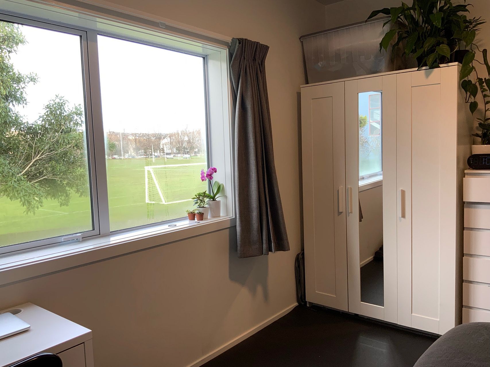 This flat was recently renovated in 2020 and comes fully furnished. It has a backyard and a deck looking out onto Logan Park as well as an open plan kitchen and living space with a heat pump.