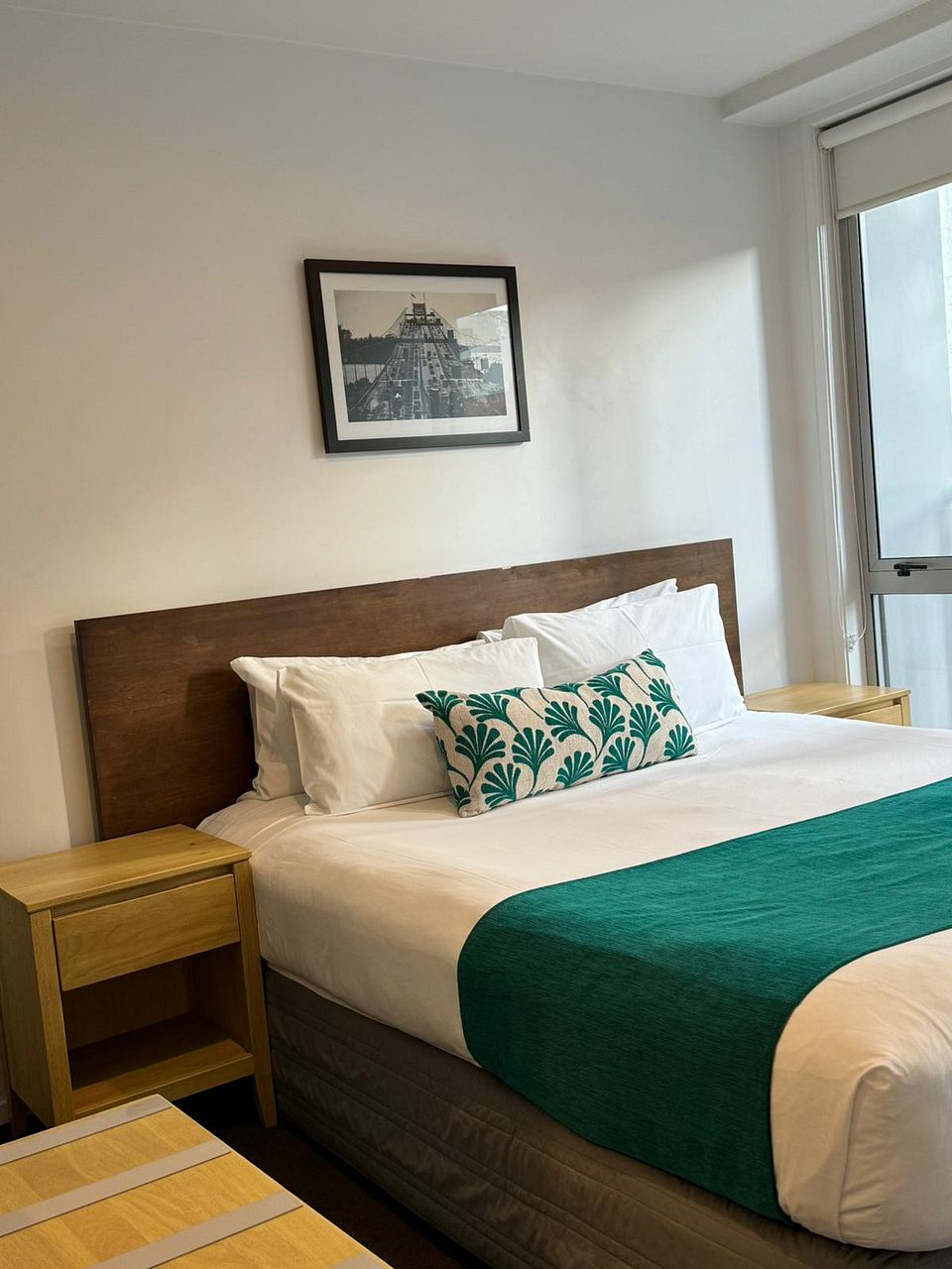 Spacious bedroom with a comfortable bed, ample storage, and natural light.