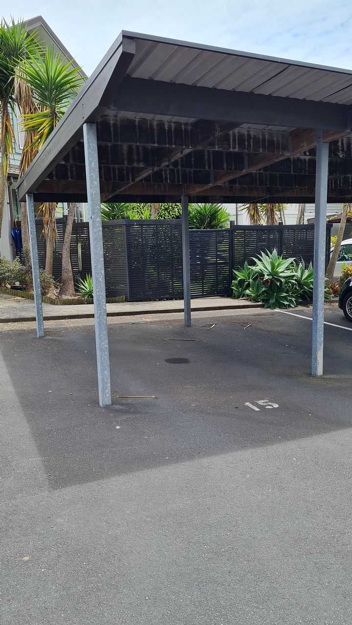 You will have your own covered carport plus one car park just outside the backdoor.