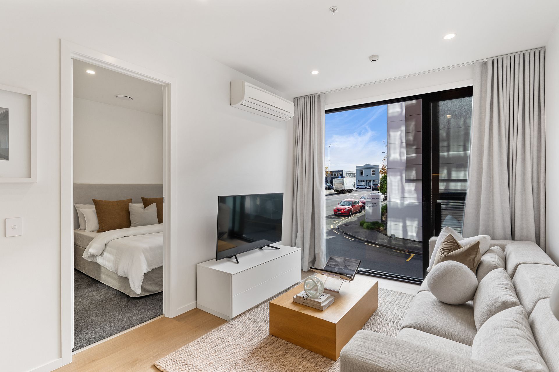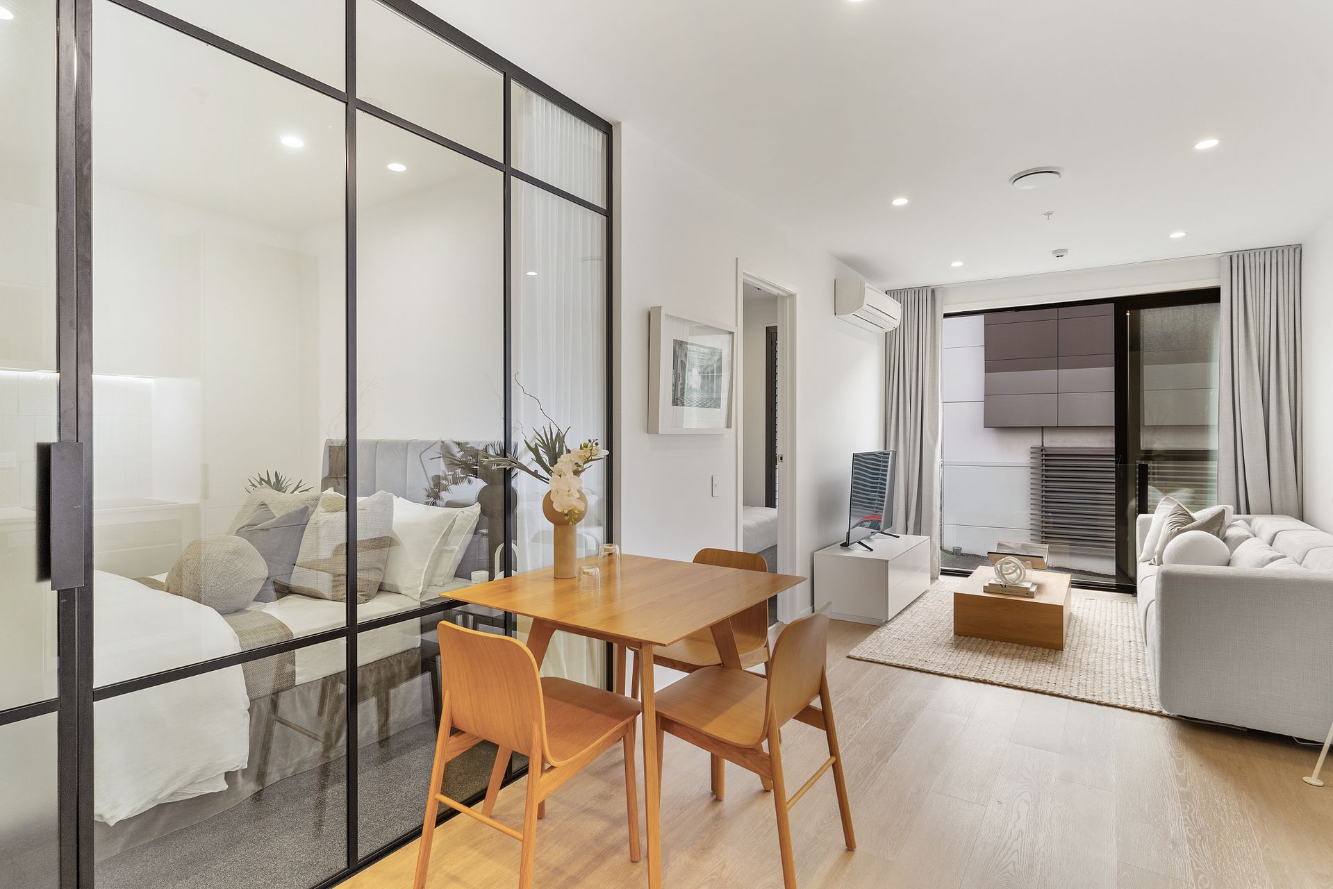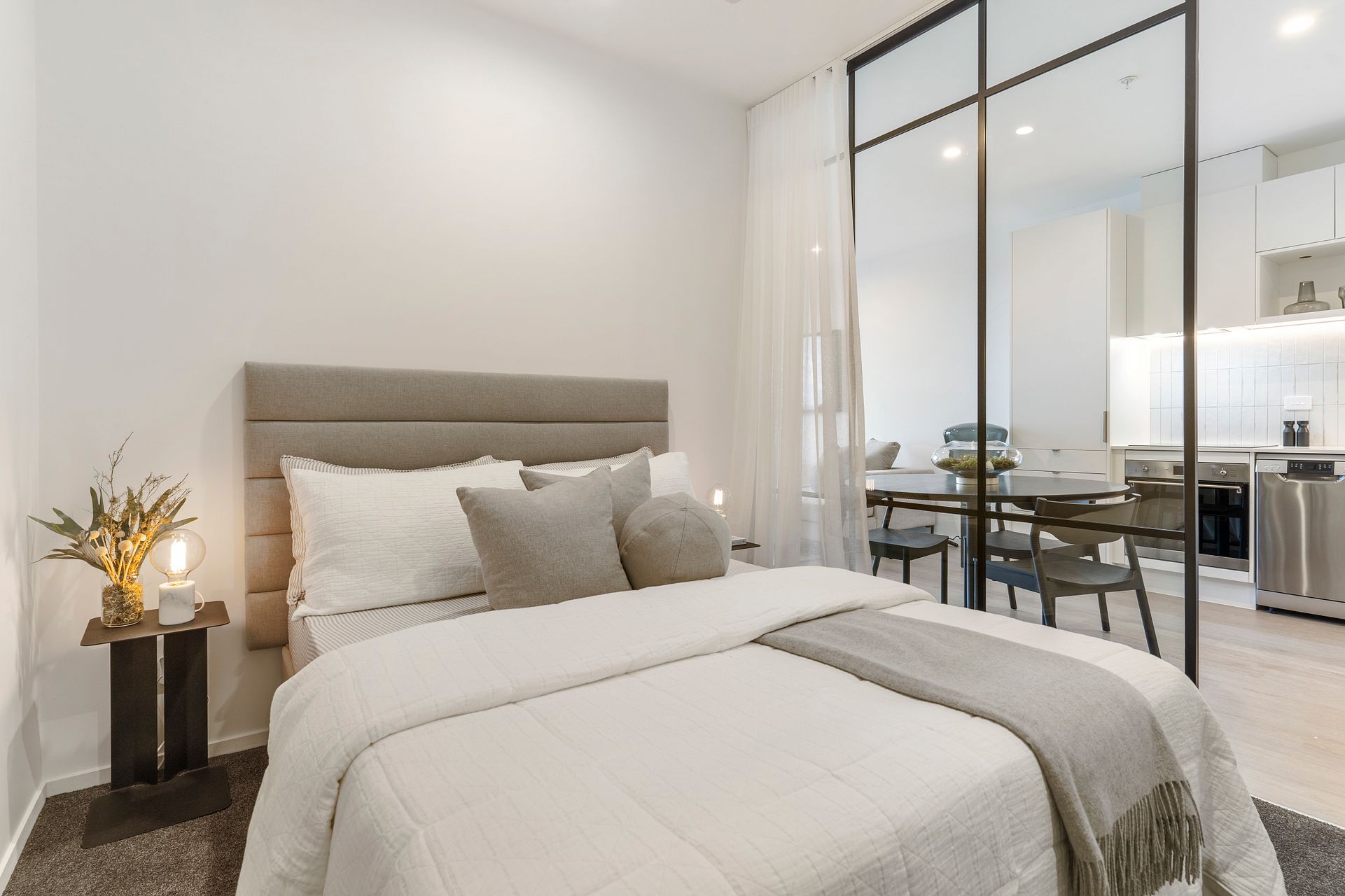 Choose between 1 Bedroom (from $575pw), 1 Bedroom + Study (from $645pw) or 1 Bedroom + Flexi-room (from $680pw) apartment layouts. For an additional $40pw a semi-furnished apartment will include a Queen bed, dining table & two chairs plus a sofa. Gated carparks are $80pw each.