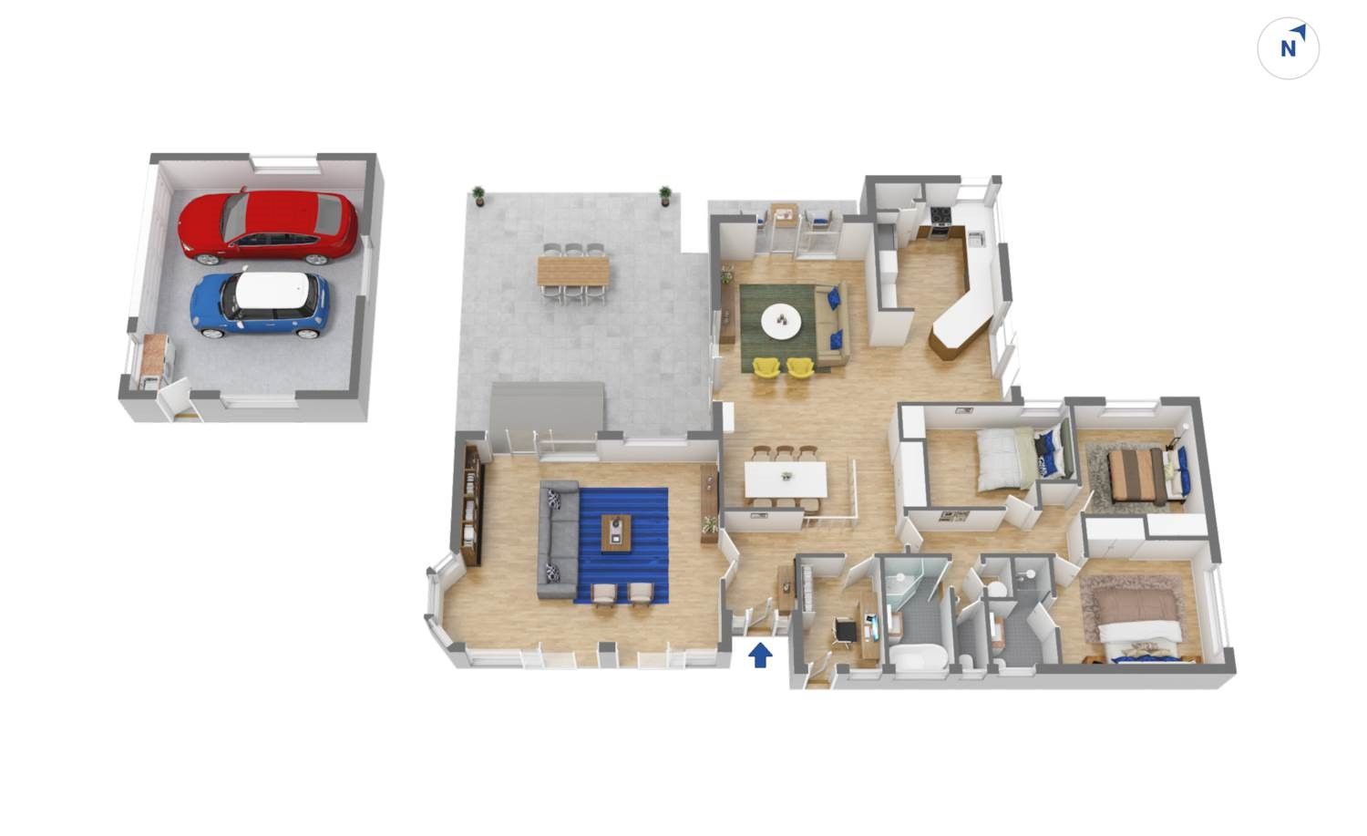 - Double external garage.