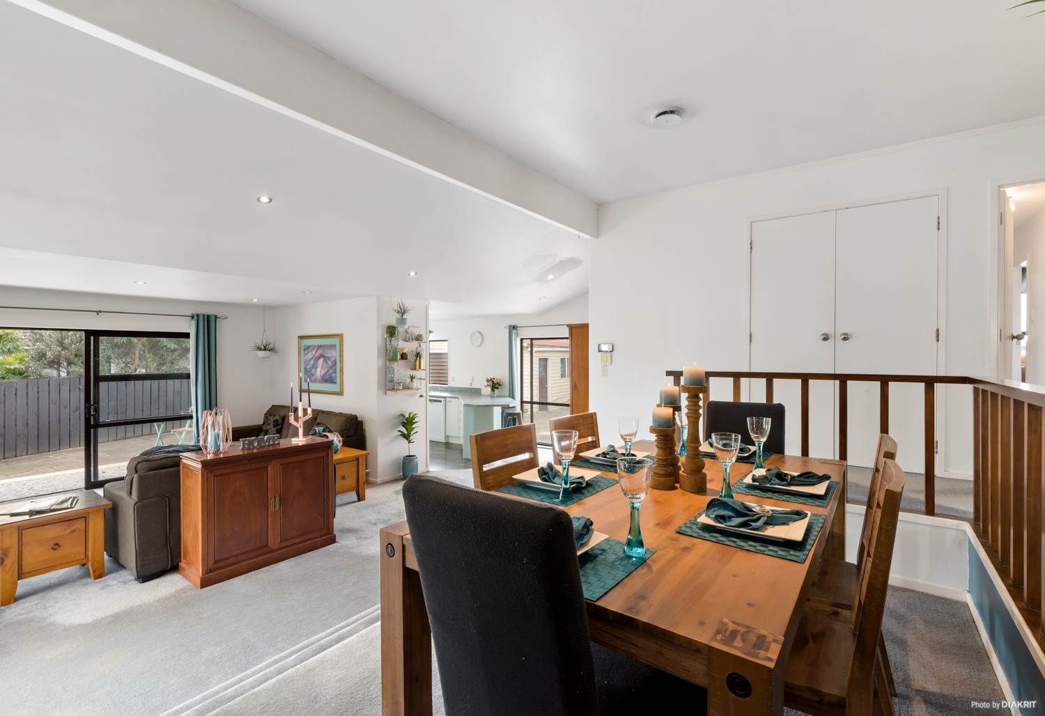 - Open plan dining and kitchen.