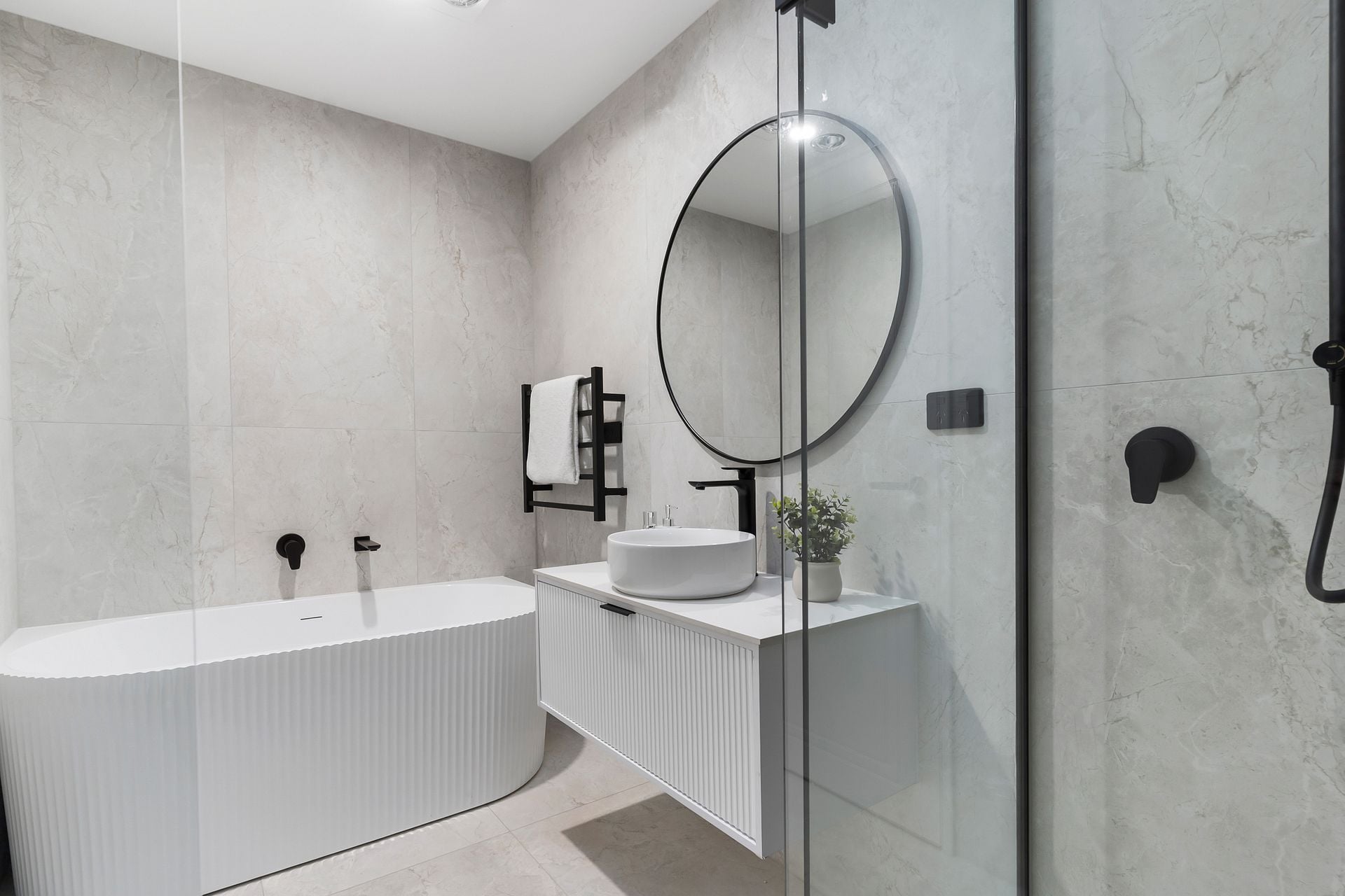 - Two stylish full bathrooms complemented by a separate guest toilet for added convenience.