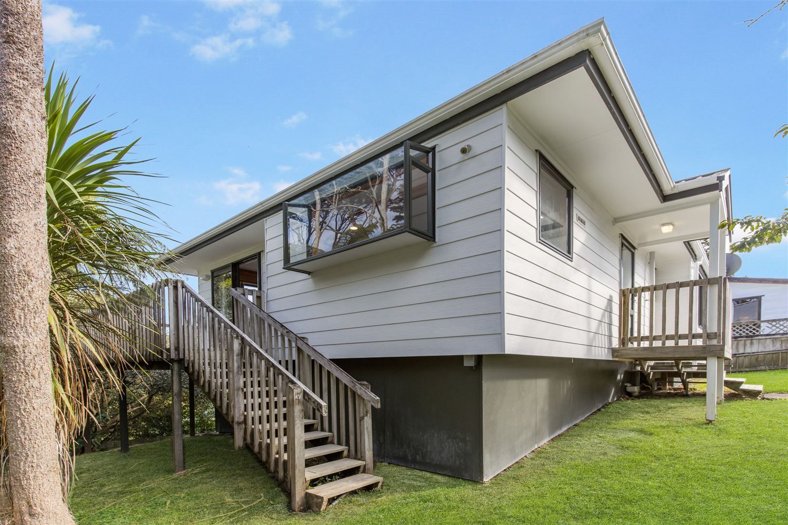 Private open plan standalone two bedroom 1 bathroom house with a seaview from the back deck and bush surrounds.