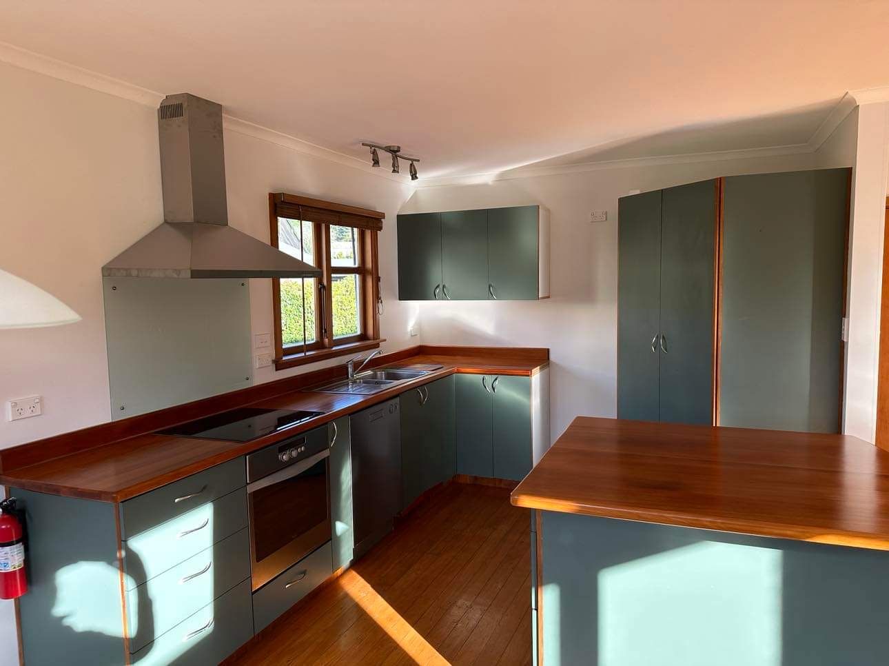 The paved courtyard and deck invite you to enjoy the outdoors with indoor/outdoor flow. The Outdoor furniture is included. A garden shed is provided for extra storage. The native garden adds a touch of greenery, and maintenance of the garden is included in the rent, lawn mowing is the responsibility of the tenant. Polished Rimu floorboards throughout the house and open plan kitchen/dining/living spaces create a natural feel to this home.