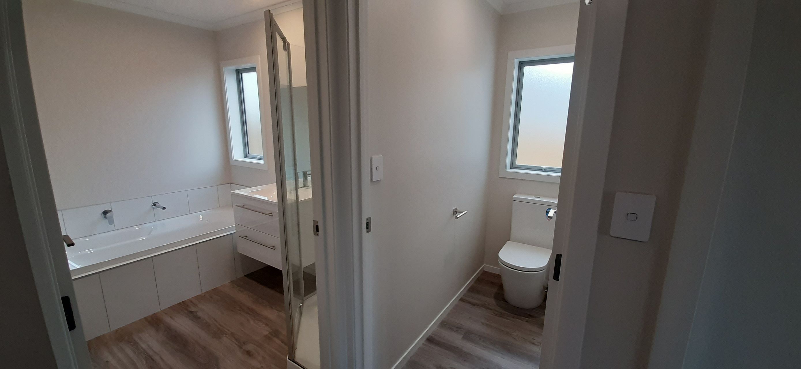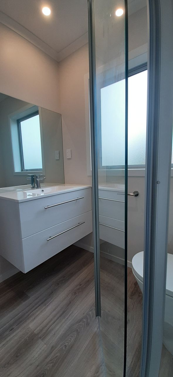 New (1 year old), 3 bed, 2 bathroom, single living, double internal access garage .