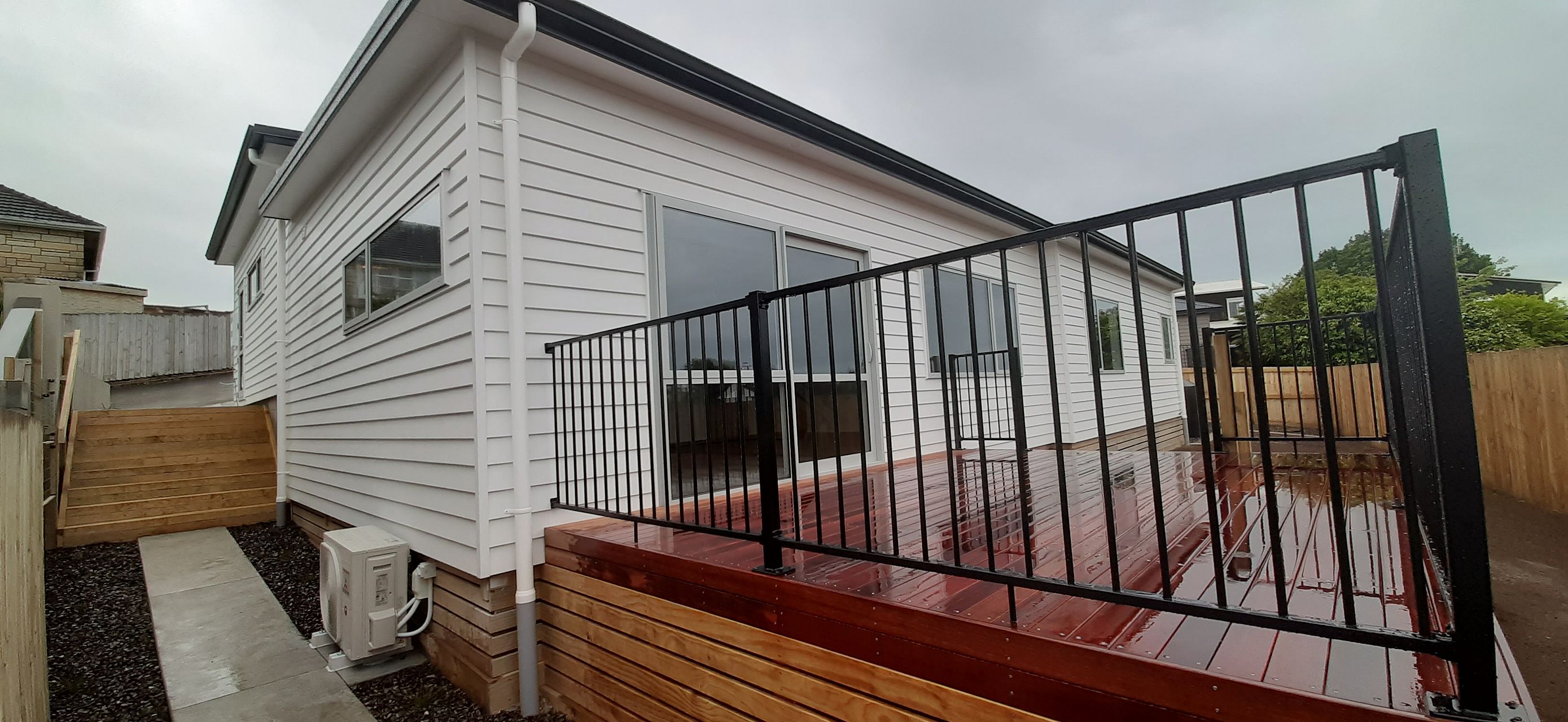 Heat pump / air conditioning, dishwasher, deck.