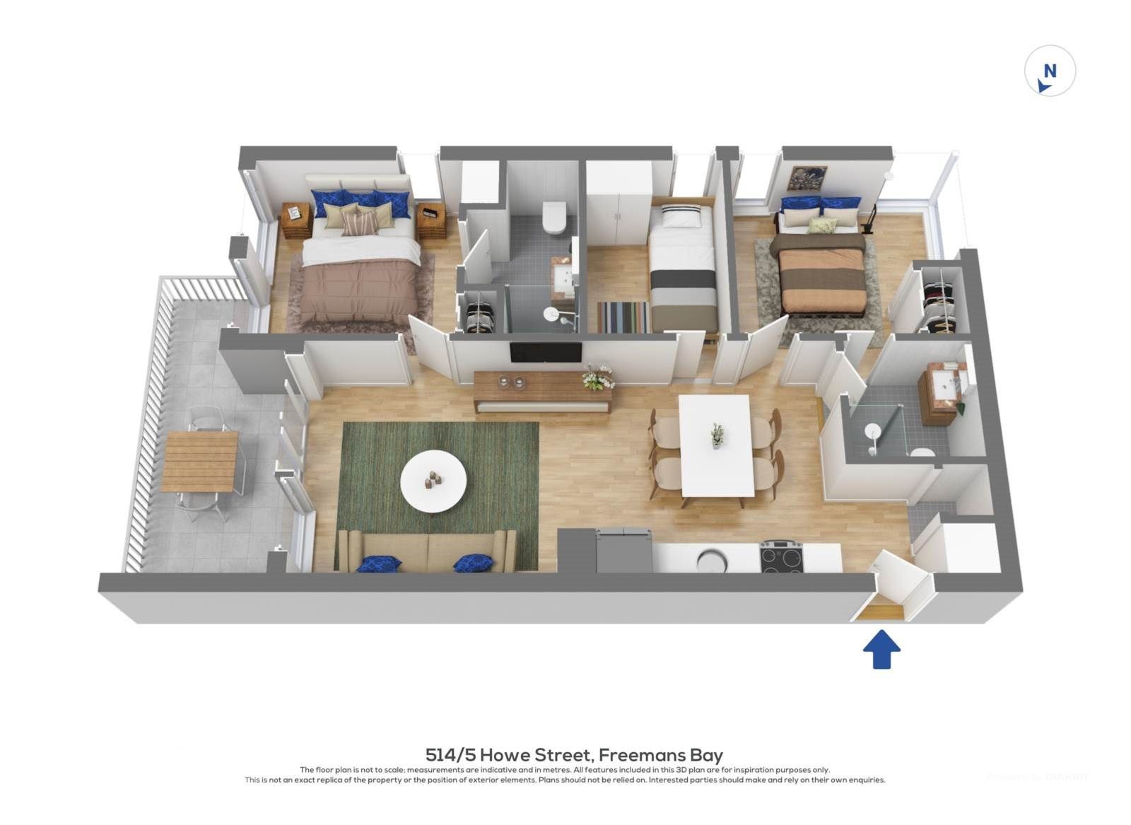 Stylish and complete 3-bedroom, 2 bathroom, 1 carpark apartment on 5 Howe Street, Freemans Bay, Auckland City.