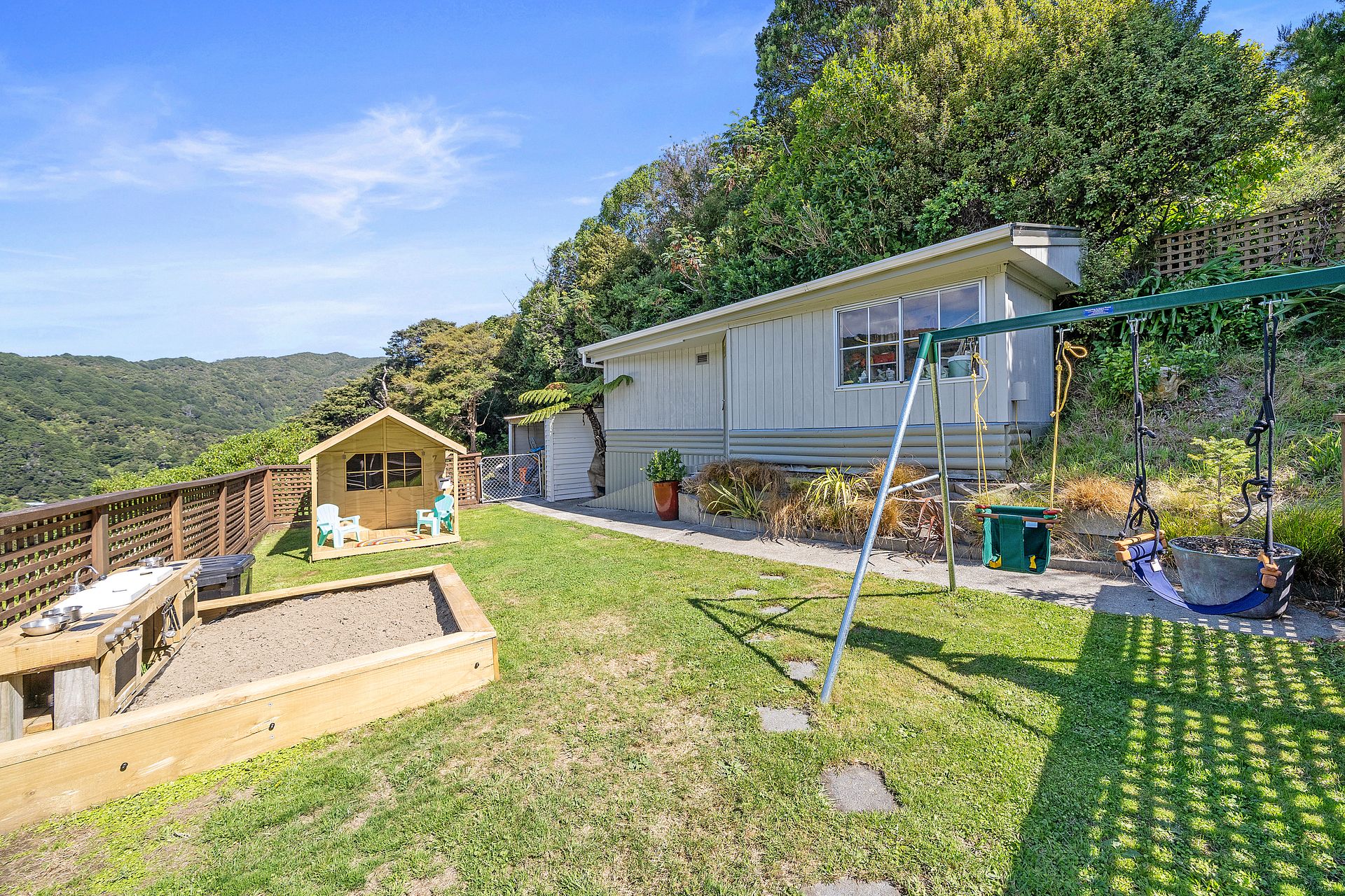 The playhouse will be removed but the sandpit/mud kitchen is negotiable.