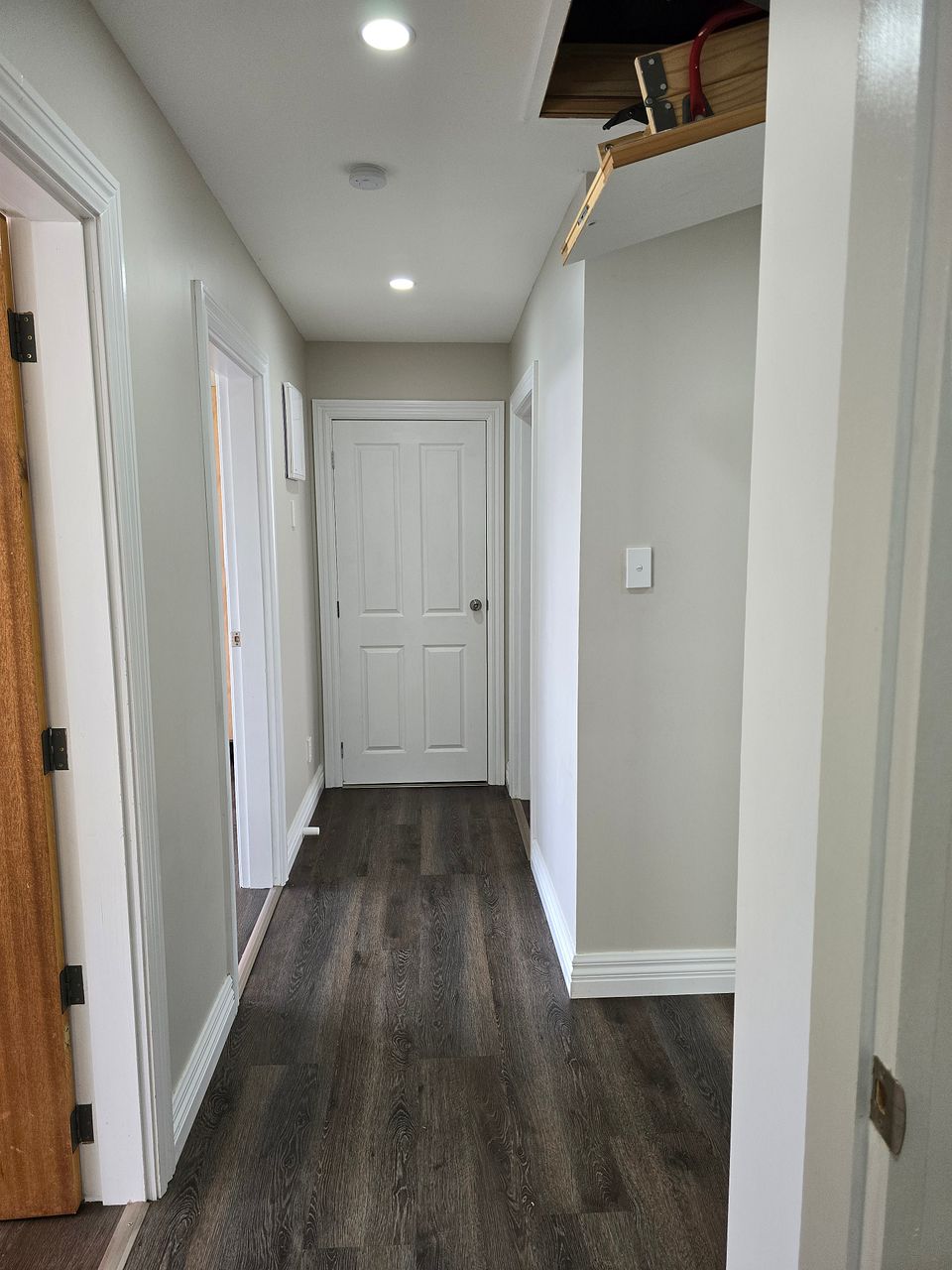 17) Plenty of space for storage in bedrooms, tiny storage space in walk-way, kitchen cabinets. And if you need more, you have an accessible attic space too.