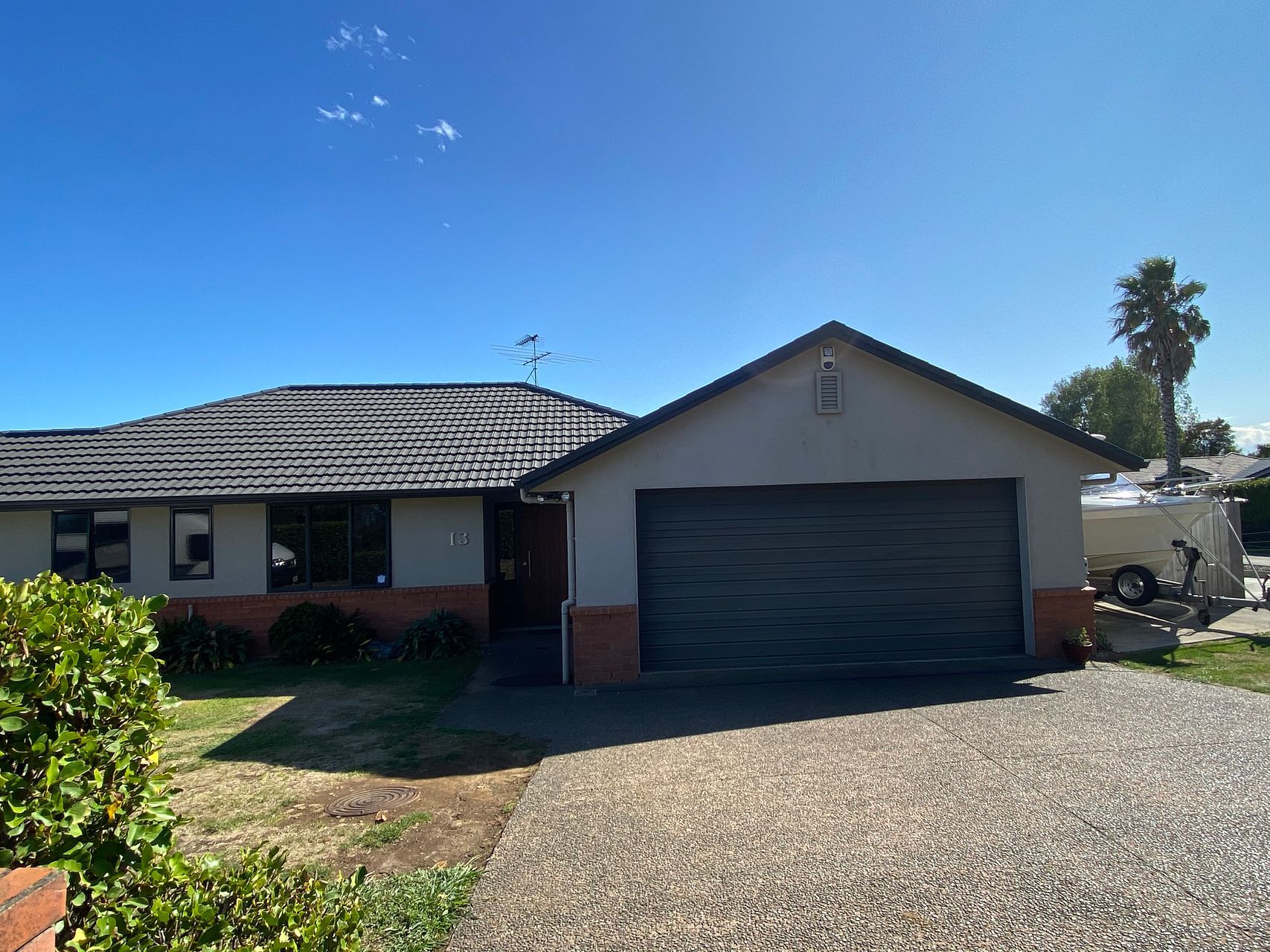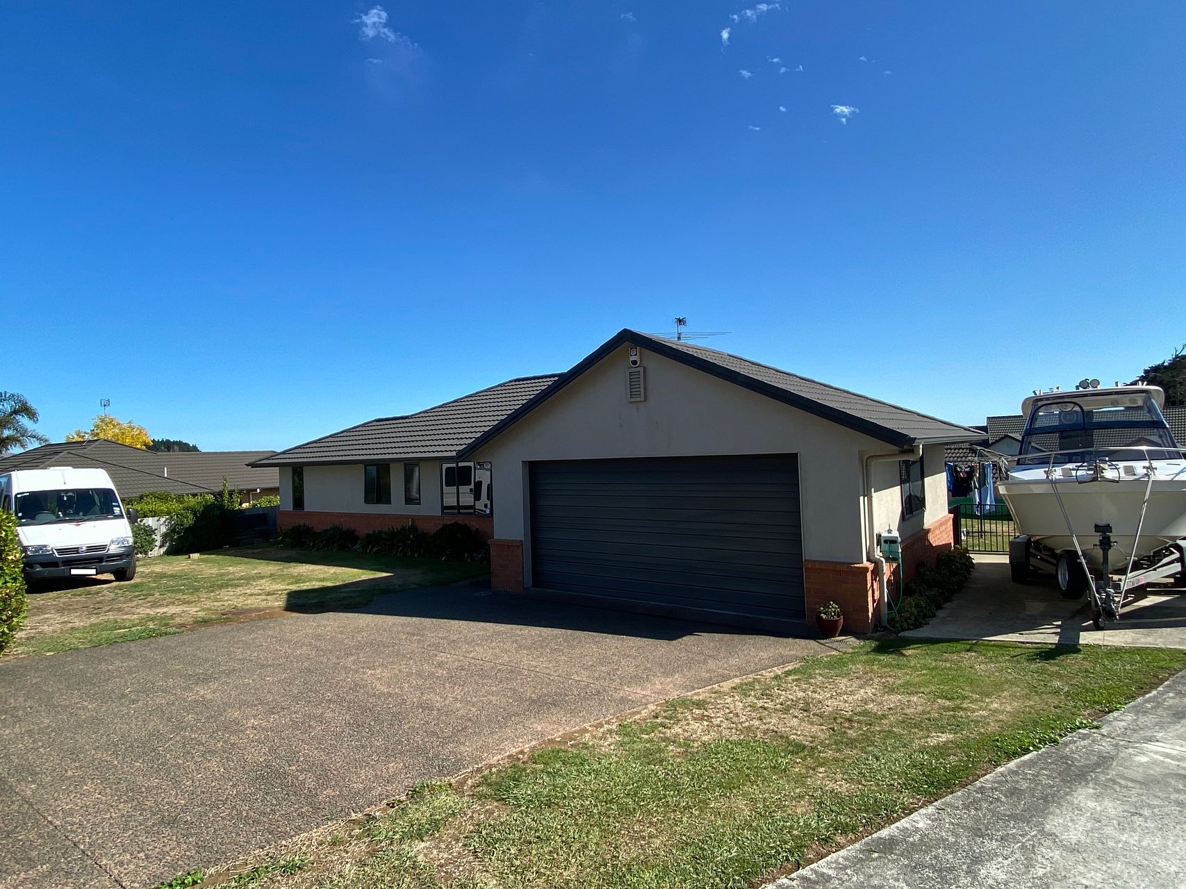 Ample parking space including space for a boat