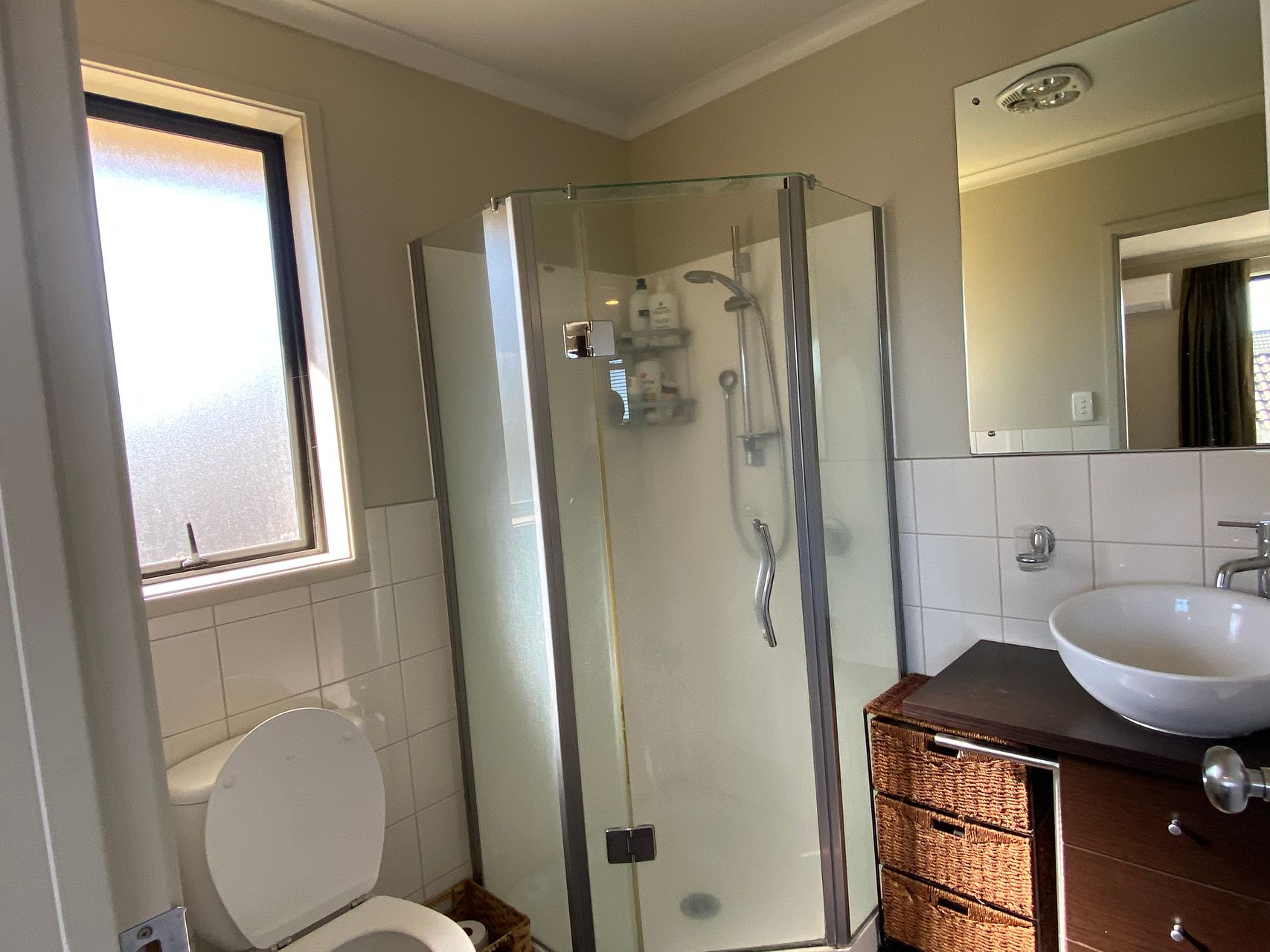 The big master bedroom has a heat pump and an en suite bathroom, as well as a walk-in wardrobe