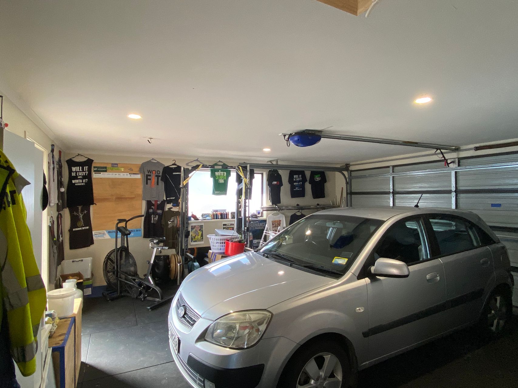 Internal access double garage with electric garage door