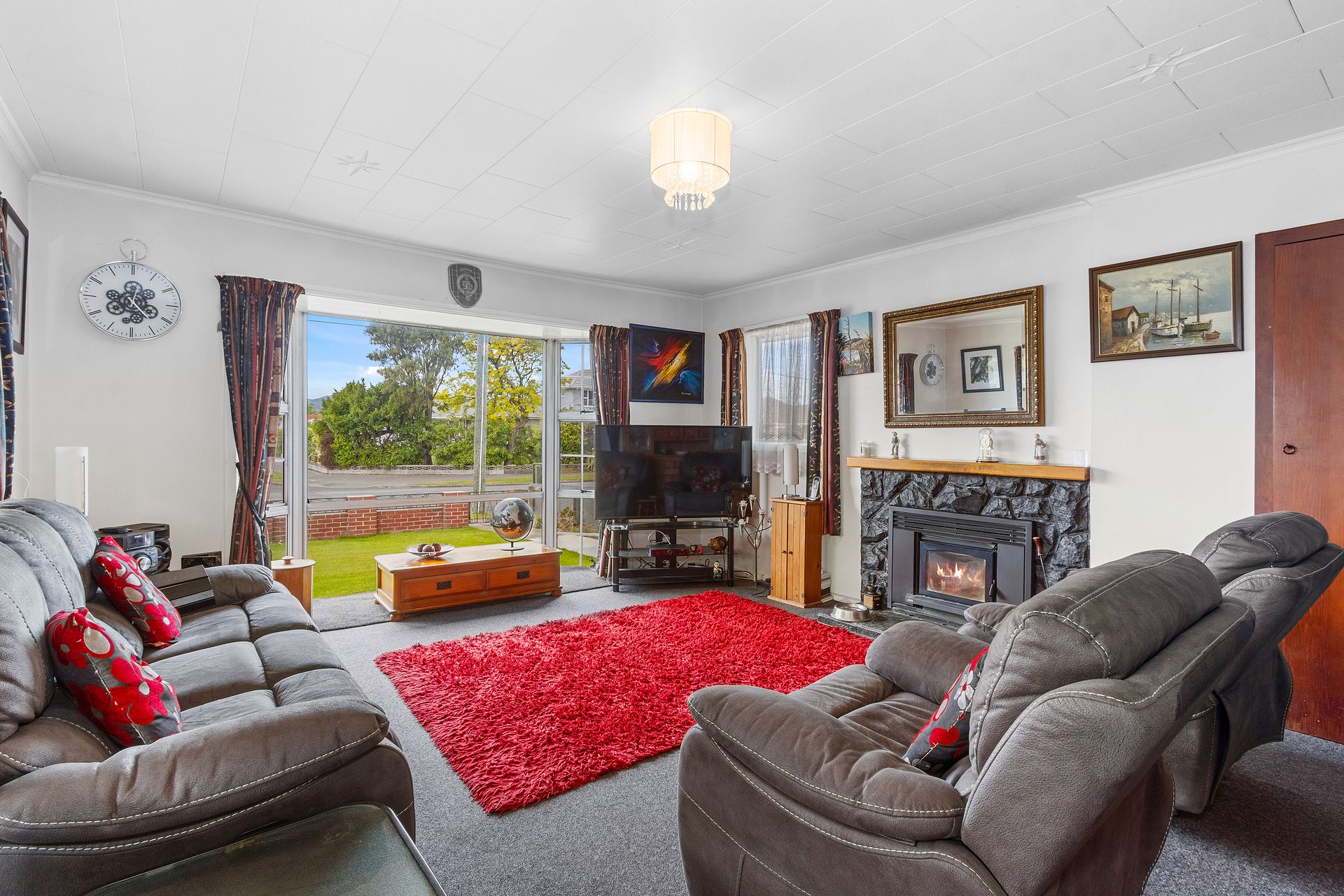 GOOD SIZE LOUNGE WITH LOGFIRE