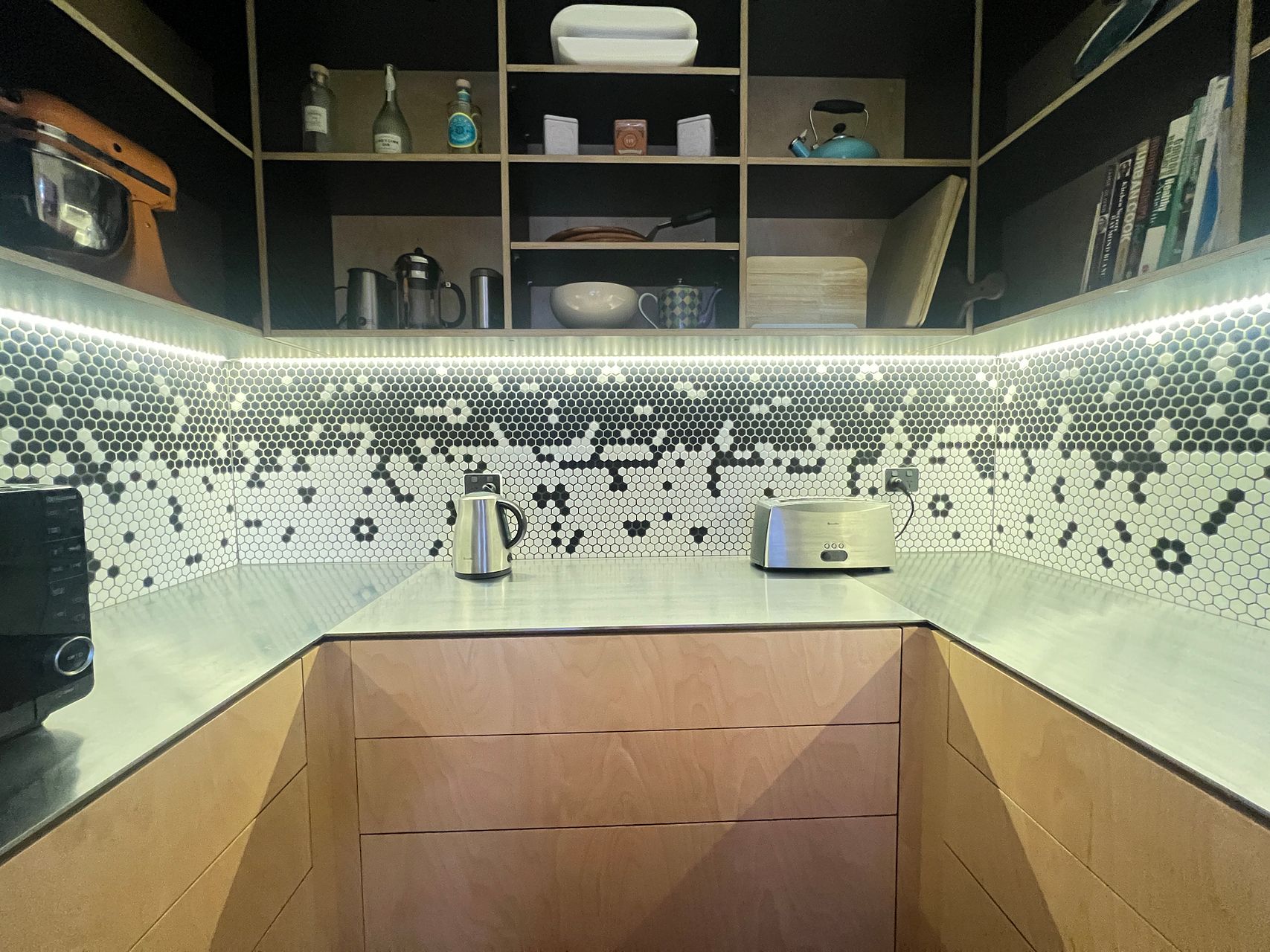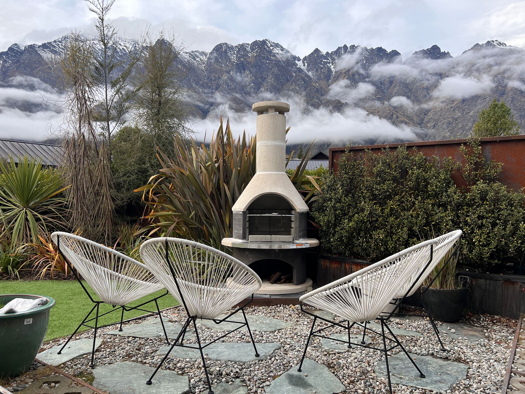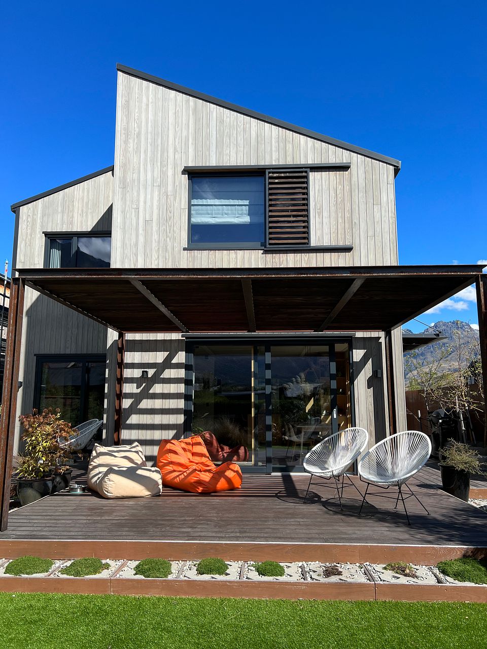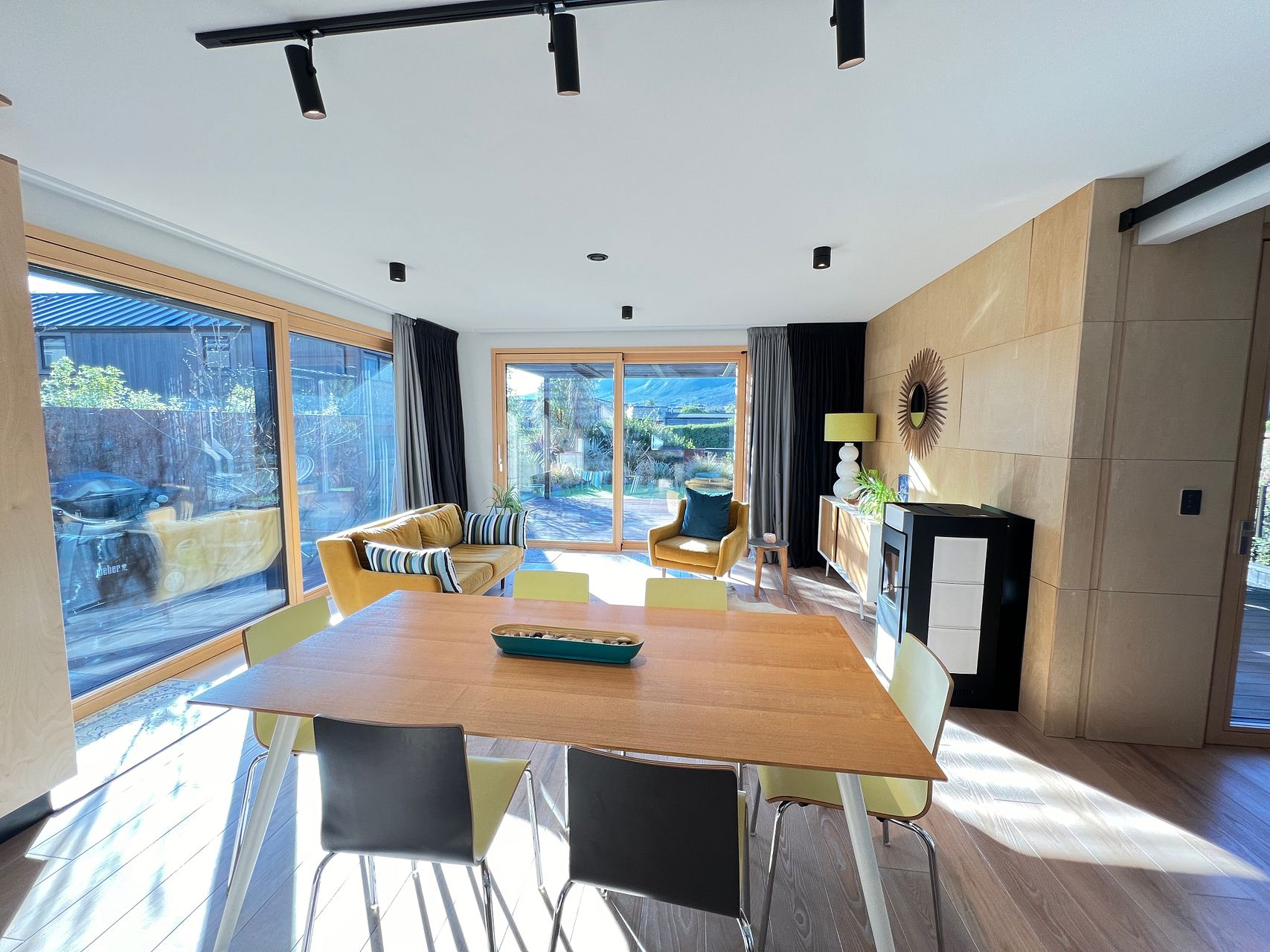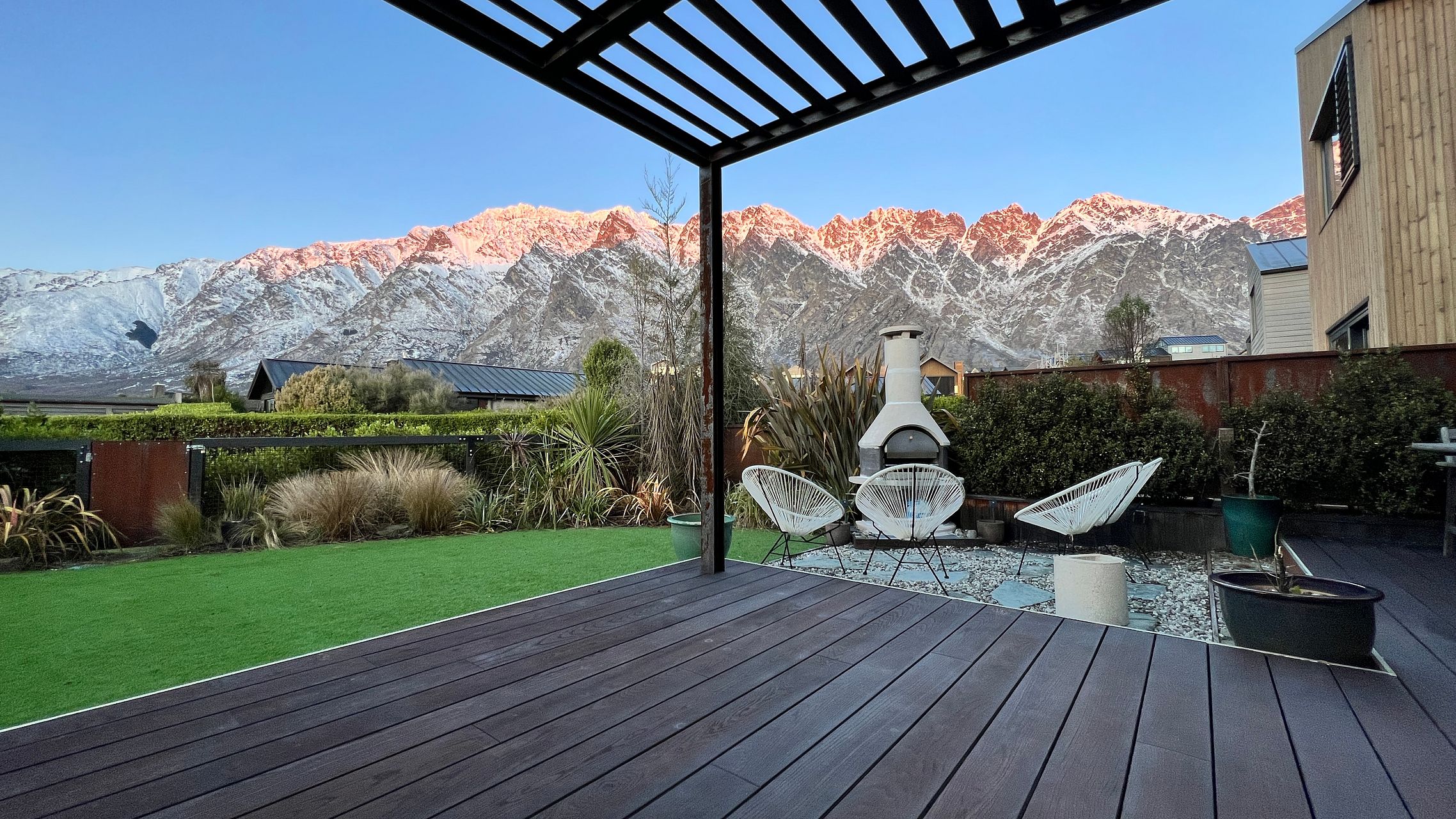 Easy care low maintenance garden with large deck BBQ and pizza oven. Triple glazed German windows and doors.