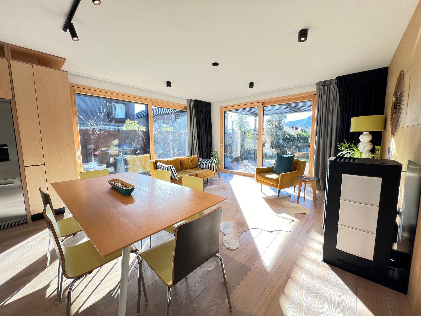 Constructed using the Passive House principles our home is warm and cosy in the winter months and cool in the summer months. Solid timber floors throughout the home, both bathrooms are fully tiled offering underfloor heating for added comfort. Open plan living with a danish pellet fire for additional warmth when required, dedicated TV room and seperate office. Internal laundry with Bosch Washer and Heatpump Dryer. Top end European appliances adds to the sophistication of this contemporary modern residence. 3 large bedrooms 2 with walk ins and 1 with ensuite. Downstairs WC.
