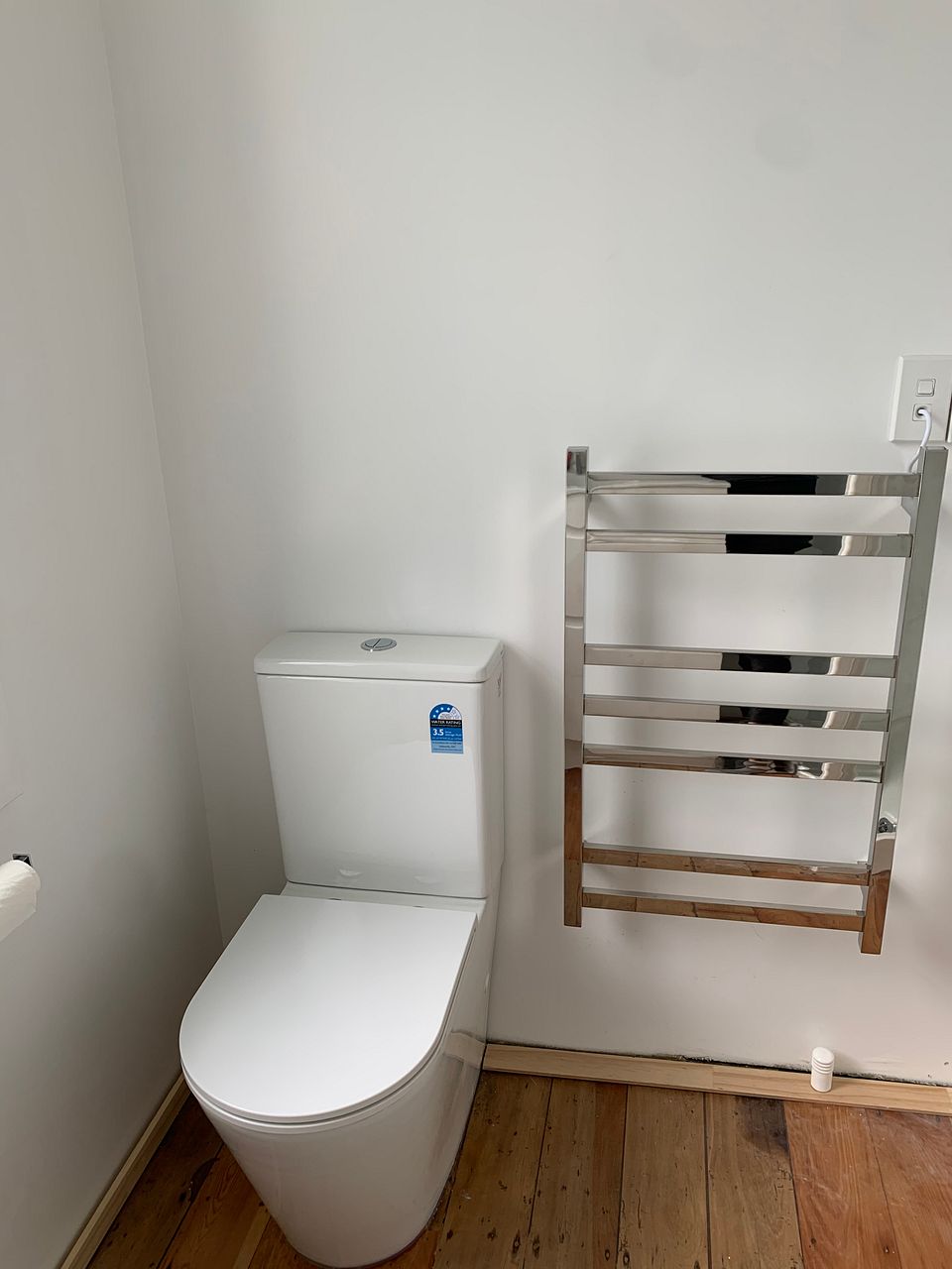 Brand new bathroom with a new toilet, shower, vanity and heated towel rail.