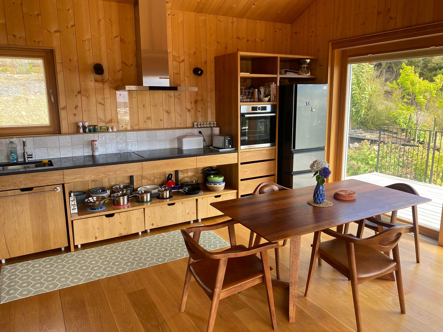 Chalet Pura Vida was completed in 2023. The walls are of interlocking timbers and no toxic glues, foams or chemicals have been used. In an all natural solid timber house your heart rate will slow down and save your heart about one hour of work a night (scientifically proven). The deep sleep phases are longer, the nervous system and immune system get strengthened. Staying at Chalet Pura Vida is like immersing yourself in the forest, you’ll get the same benefit without having to compromise on comfort.