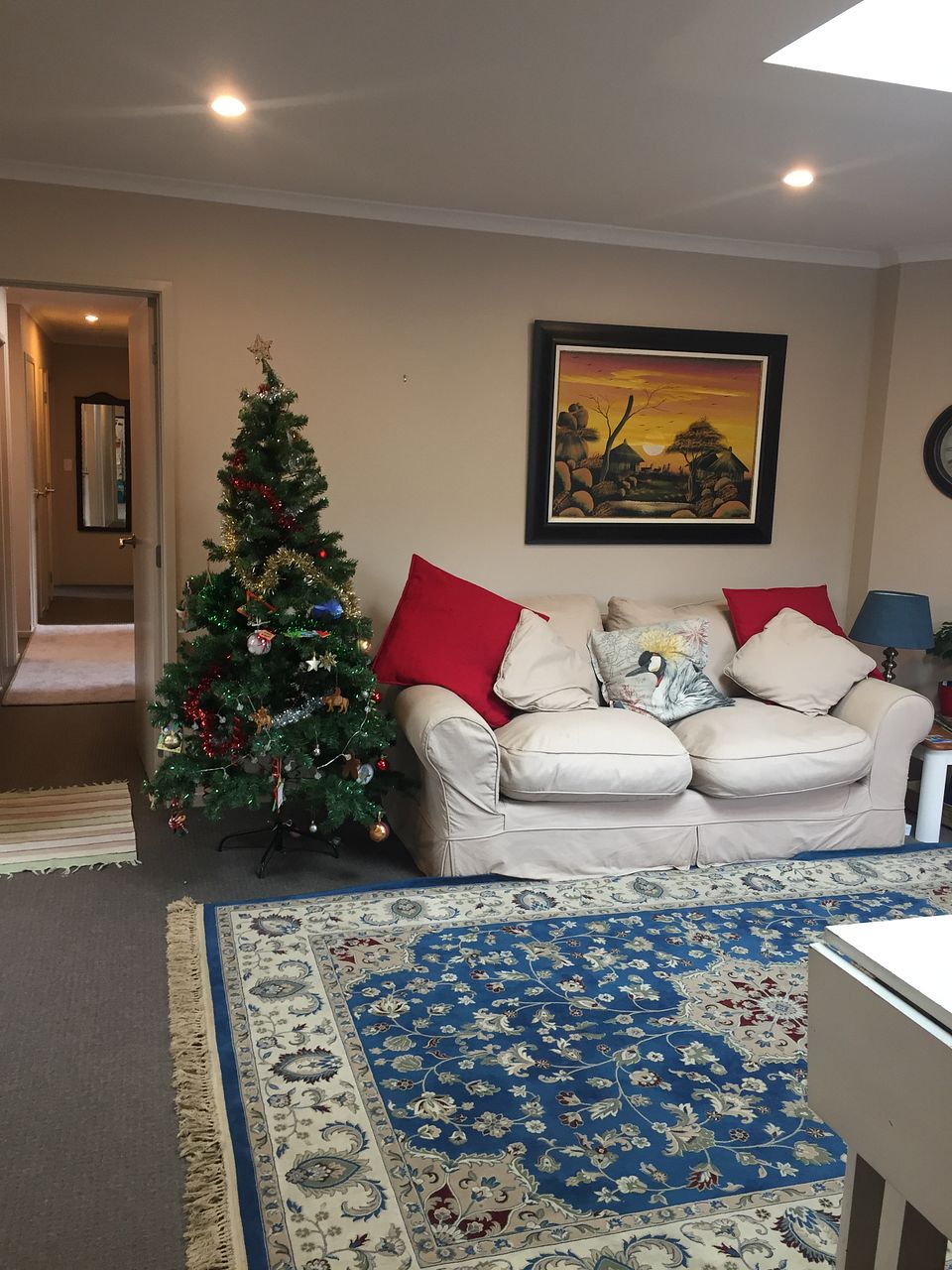 Skylights let in extra light in living areas and a heat pump will help keep the house warm in winter.