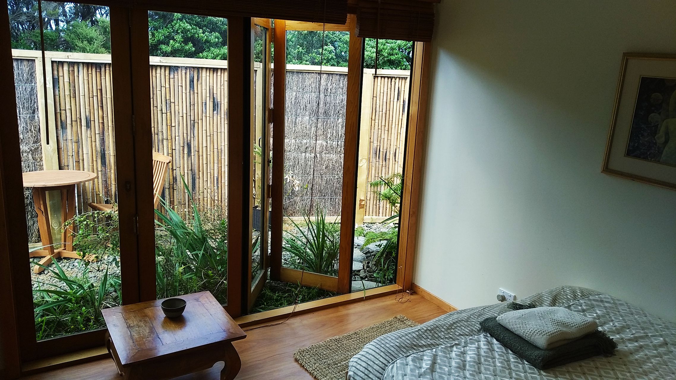 Comfy retreat room in the heart of Karekare overlooking the ocean in our little community Sacred Earth.