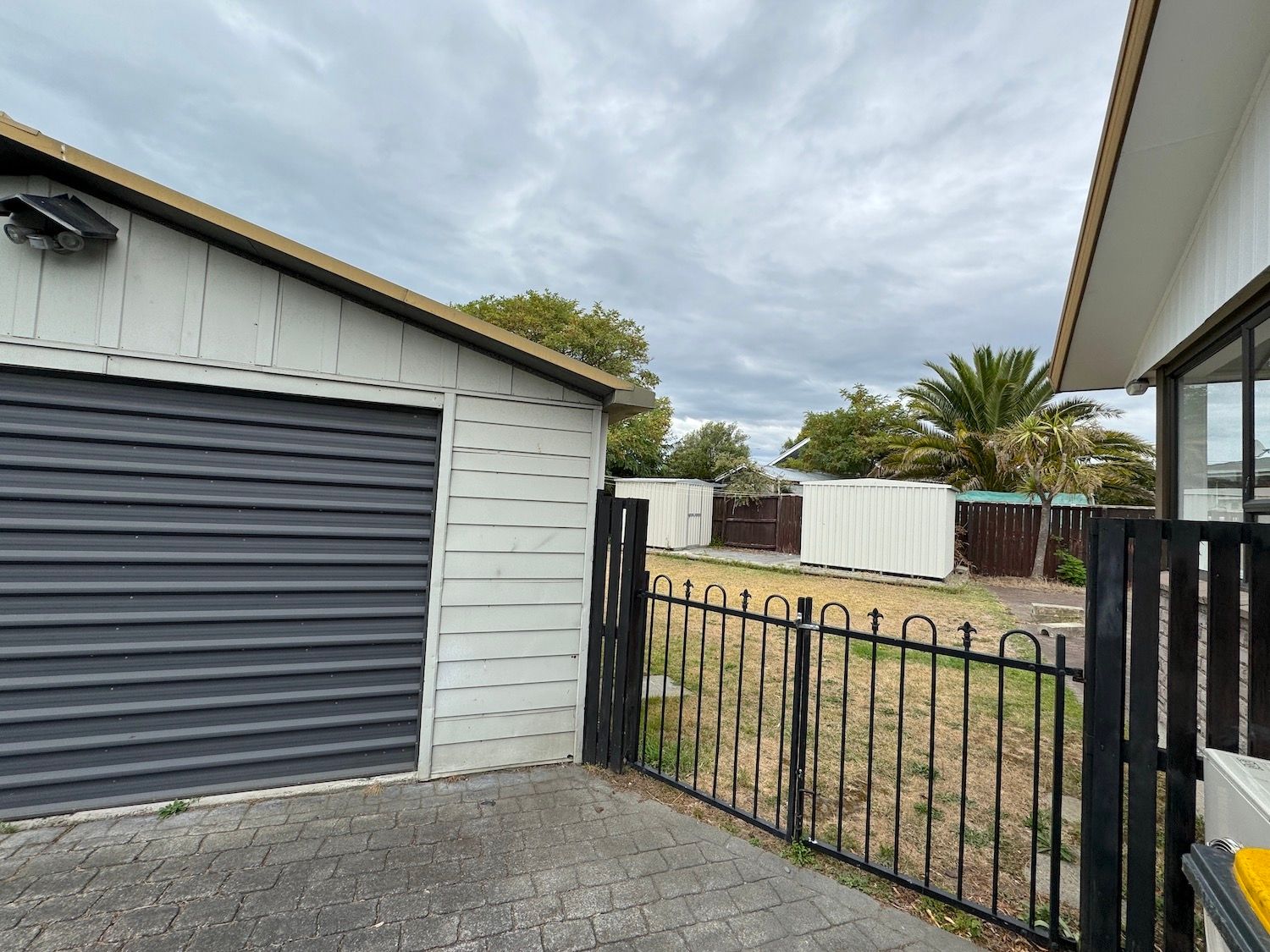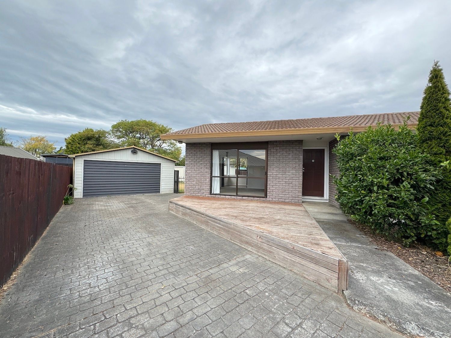 Automatic double garage is detached. The fully fenced back garden is super sized, but the gardening is easy to maintain.