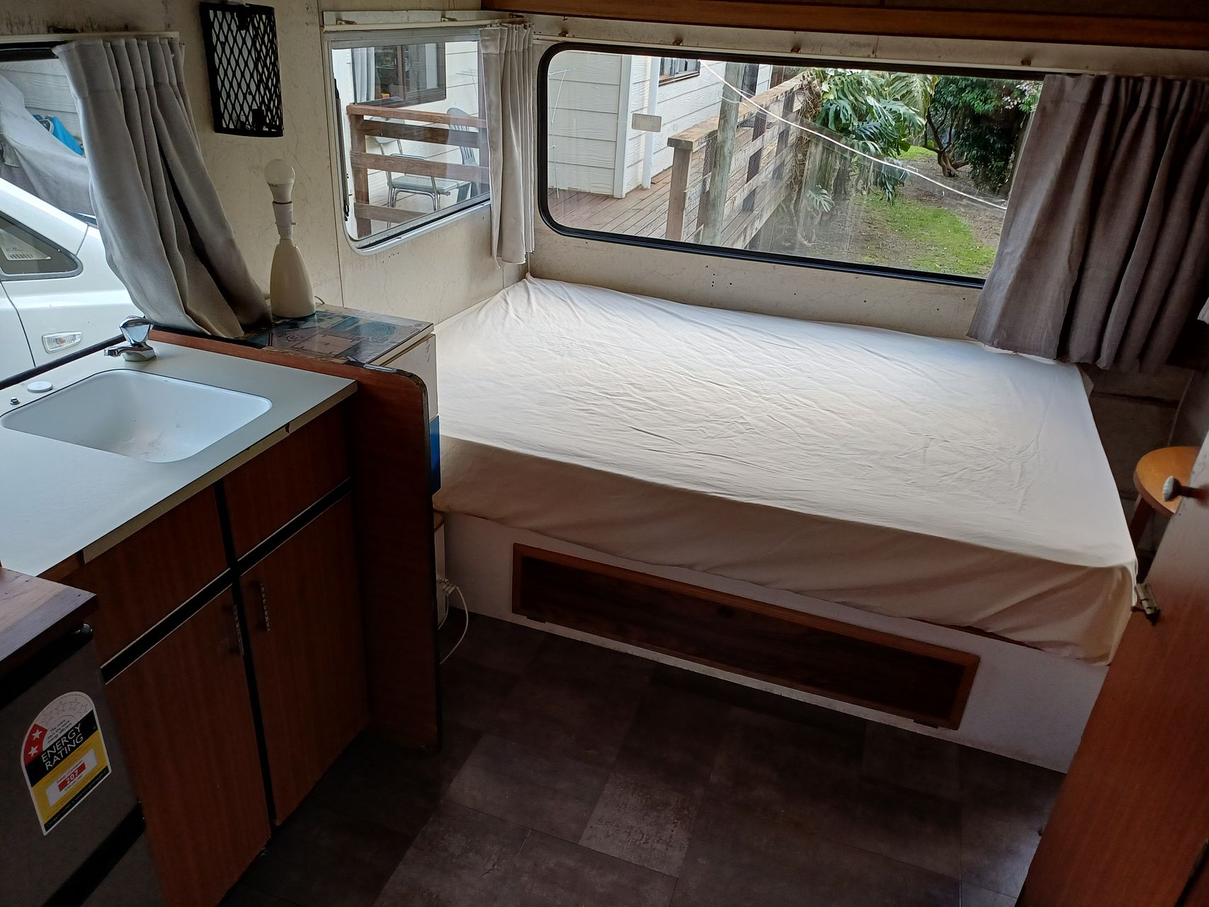 The house is quite spacious with an open plan kitchen & lounge and a separate bath/shower and toilet. There is a nice sunny outdoor area which is great for BBQ 's in the summer. It's a very relaxed, no stress, quiet setting with off street parking available.
