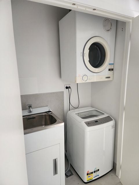 Furnishings & whiteware: Microwave, dishwasher, washing machine, dryer, garden shed and outdoor storage cupboard.