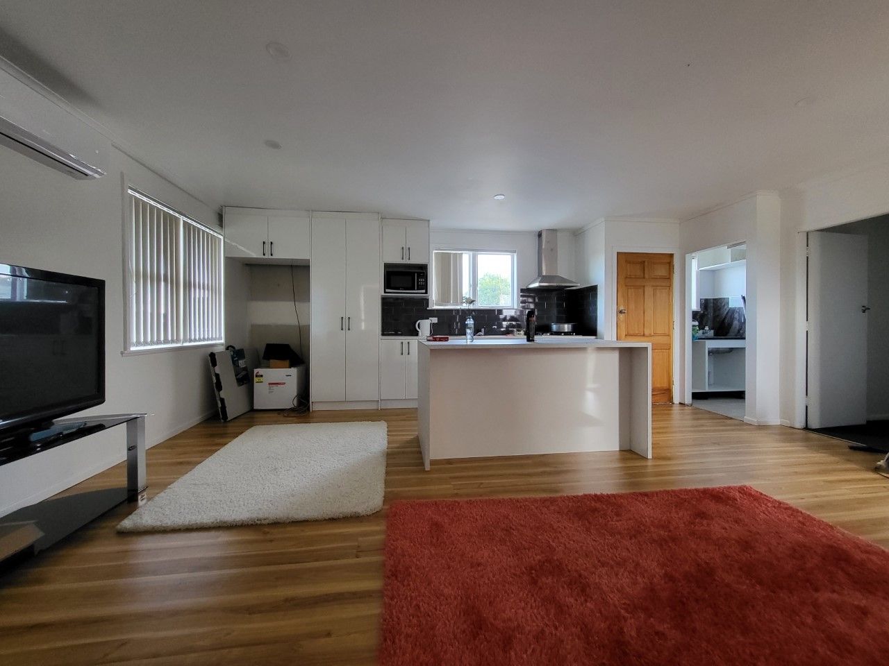 - Lounge/Dining/Kitchen: Open planned, floorings, with a heat pump.