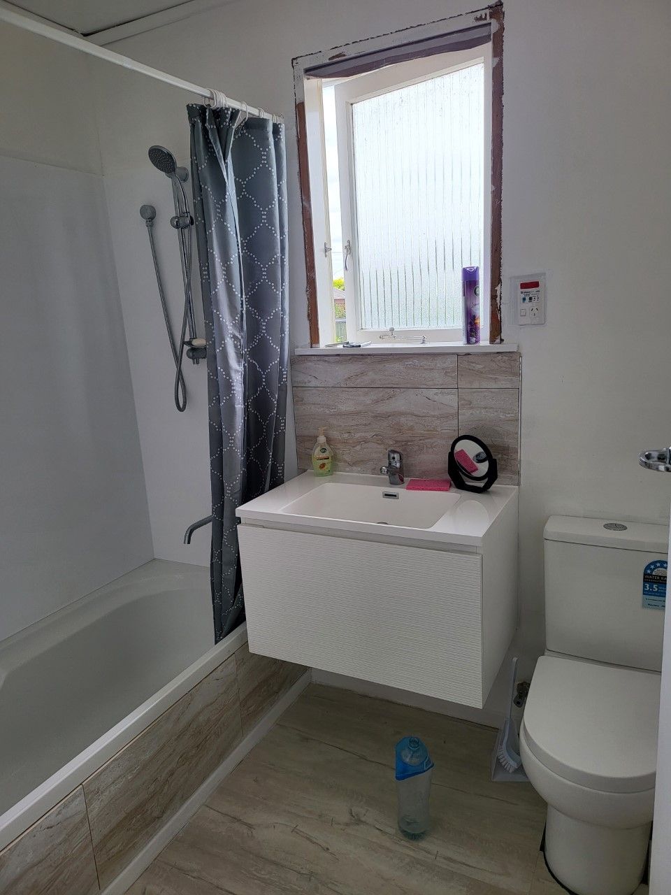 - Bathroom: Shower over bath with toilet.