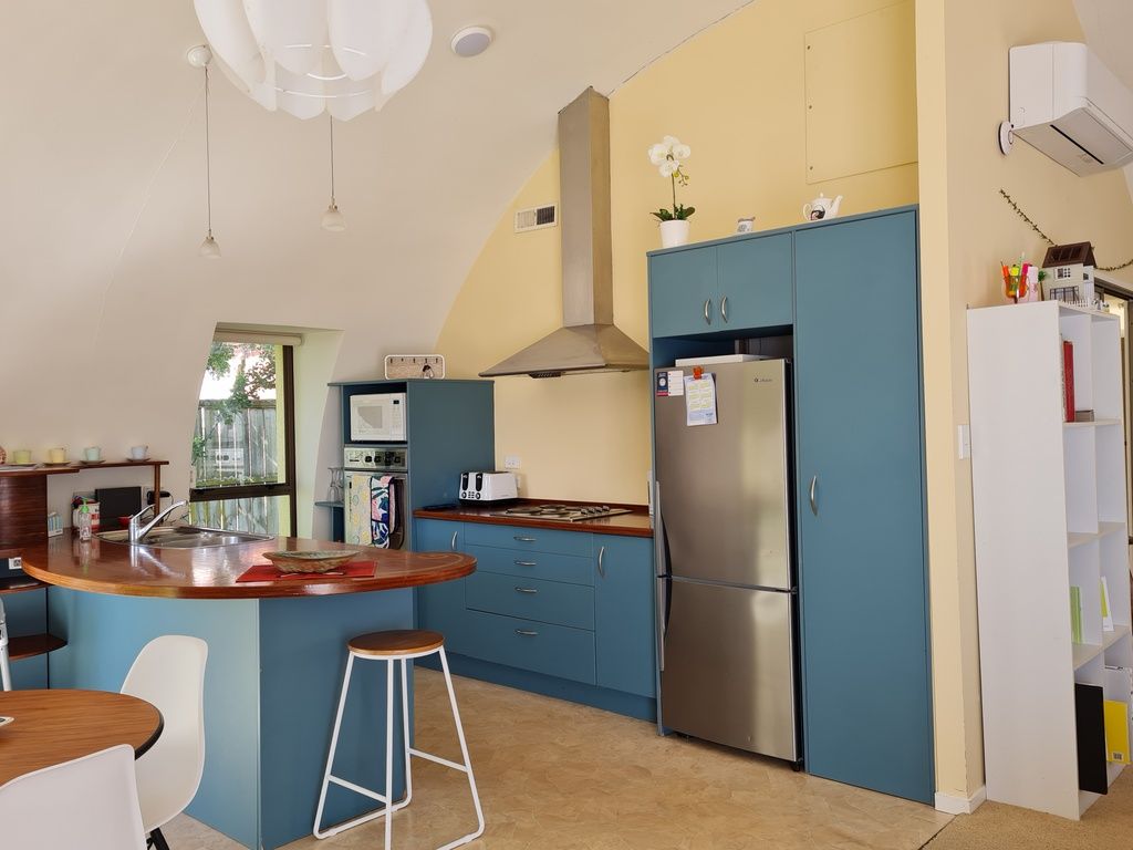 This comfortable house is comprised of two domes connected by a corridor. One dome is the living area with open plan kitchen/dining and lounge. There is also a laundry.