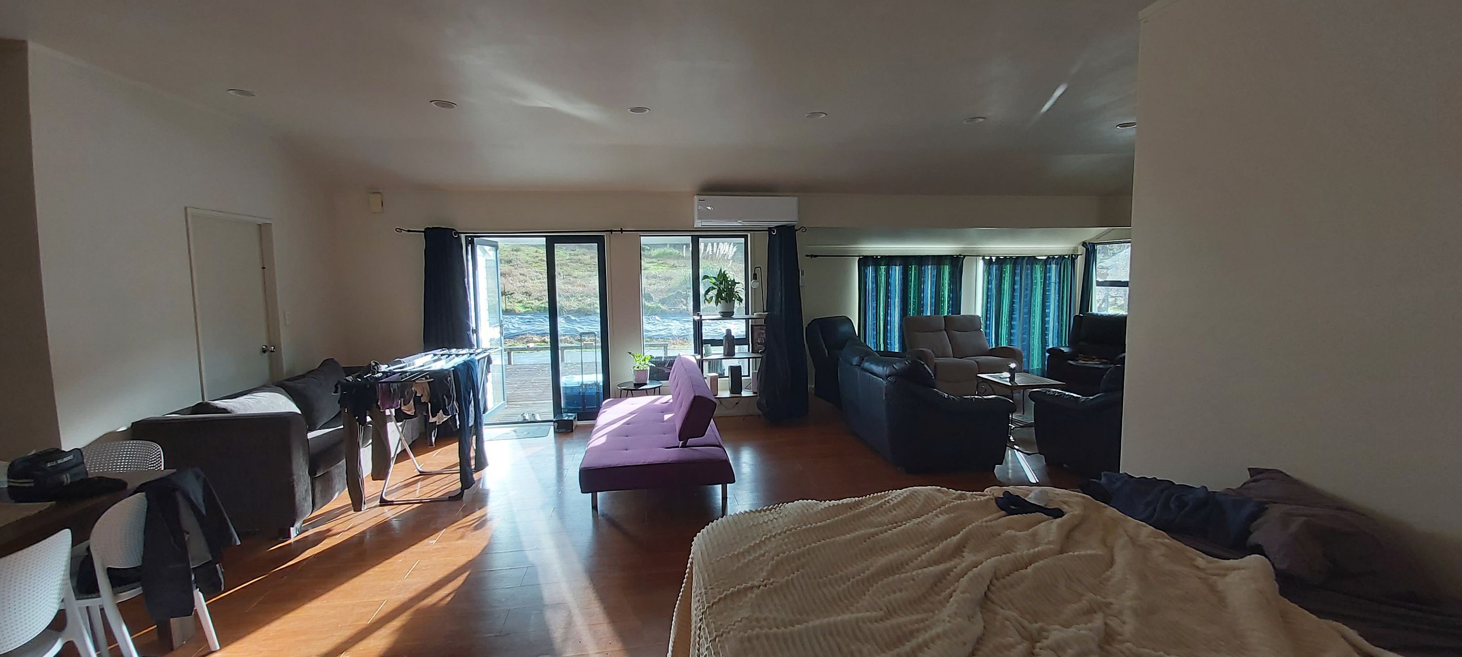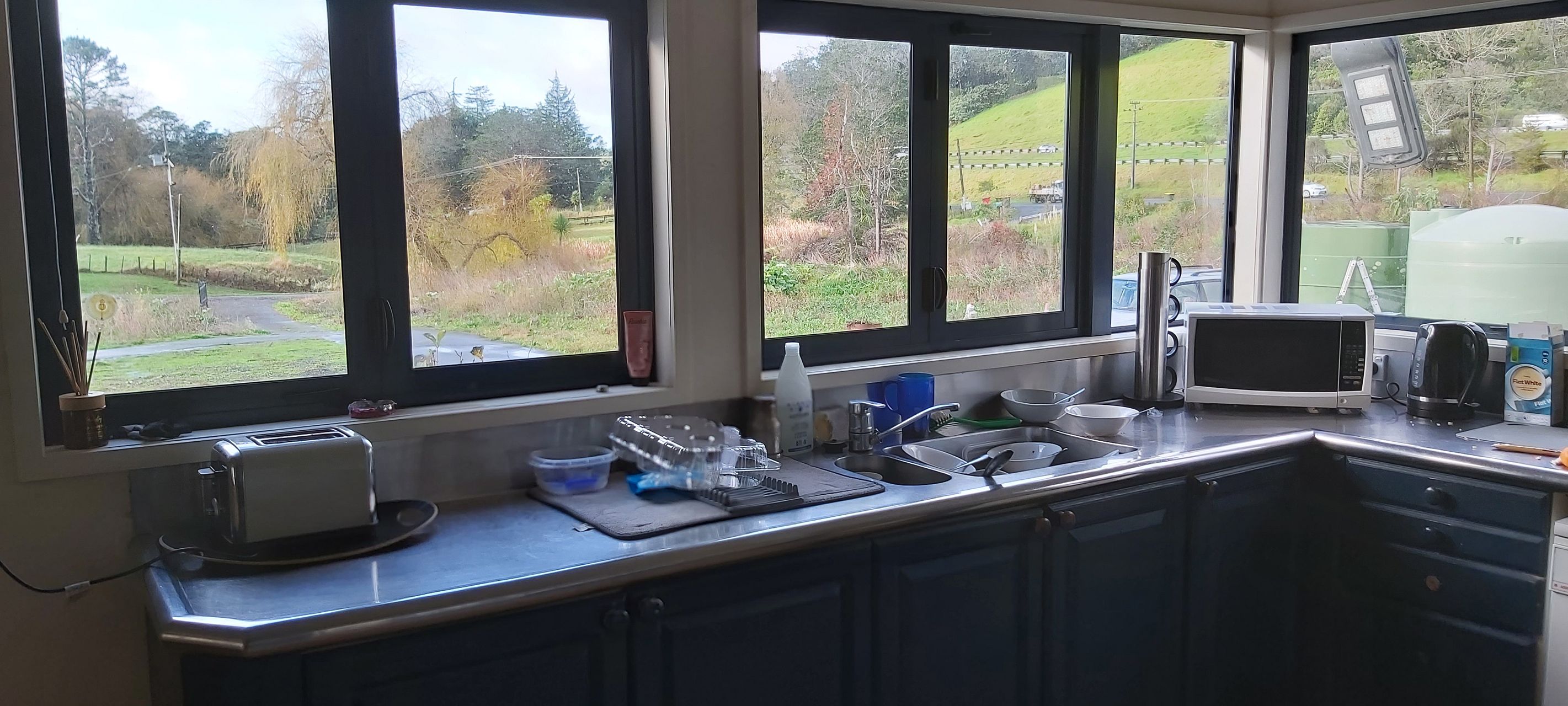 Off East Coast road , Concrete drive way led to the entrance of the flat . Large deck area with rural view.