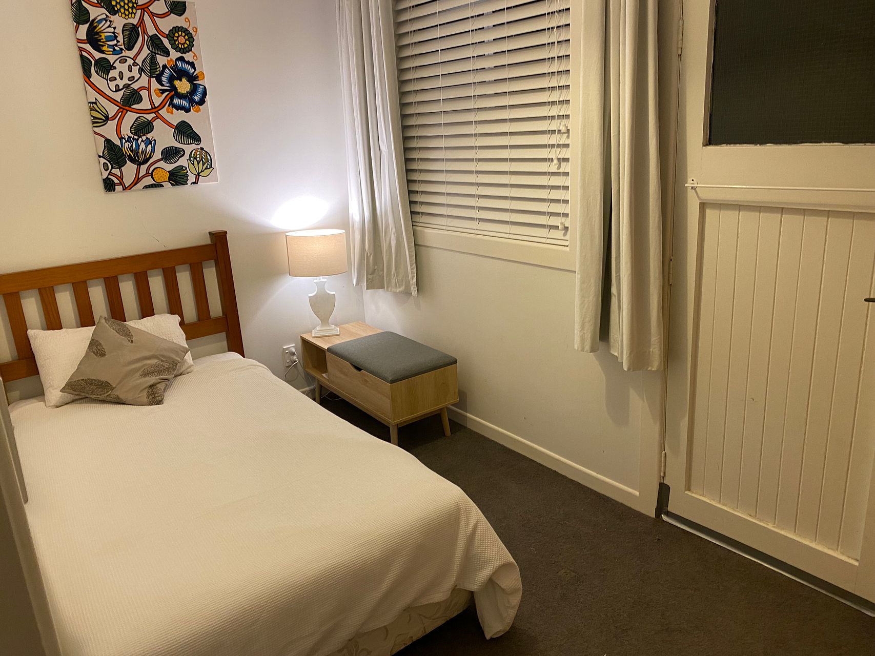 Refurbished in 2019, this is a very cosy flat in winter with an 8kw heat pump, built in dehumidifier, wall and ceiling insulation throughout and thick under-carpet underlay. High speed fibre is available. Two modern bathrooms. There’s a large sunny yard out back, clothes lines and 2 side by side off street car-parks!!! The flat is available from 3 February 2024 for a fixed one year term.