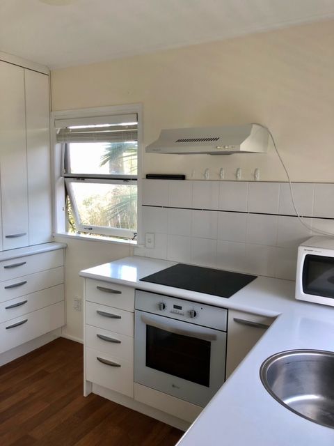Private, sunny, very quiet recently refurbished flat in residential street at rear of main property. 1 double bedroom, separate bathroom/laundry, separate toilet, and open plan lounge with modern kitchen. Separate access from main building, on sunny side.