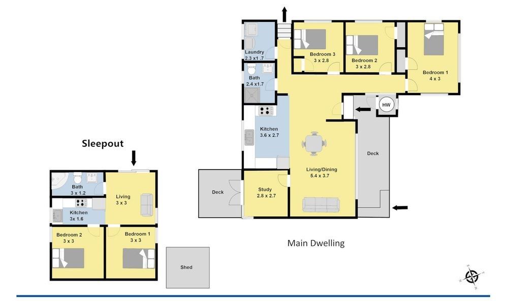 (2 Bedroom + 1 Bath Sleepout)