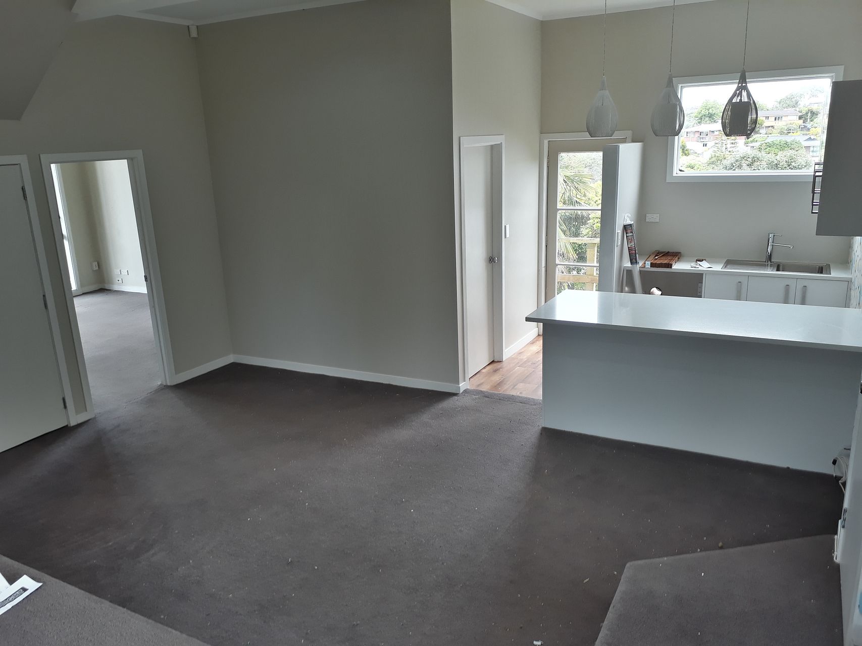 Entry into office or 2nd lounge space, this open on one side to a large bedroom, and also into the open plan dining & lounge. Brand new kitchenette with breakfast bar. Would suit a single or couple. Available now.