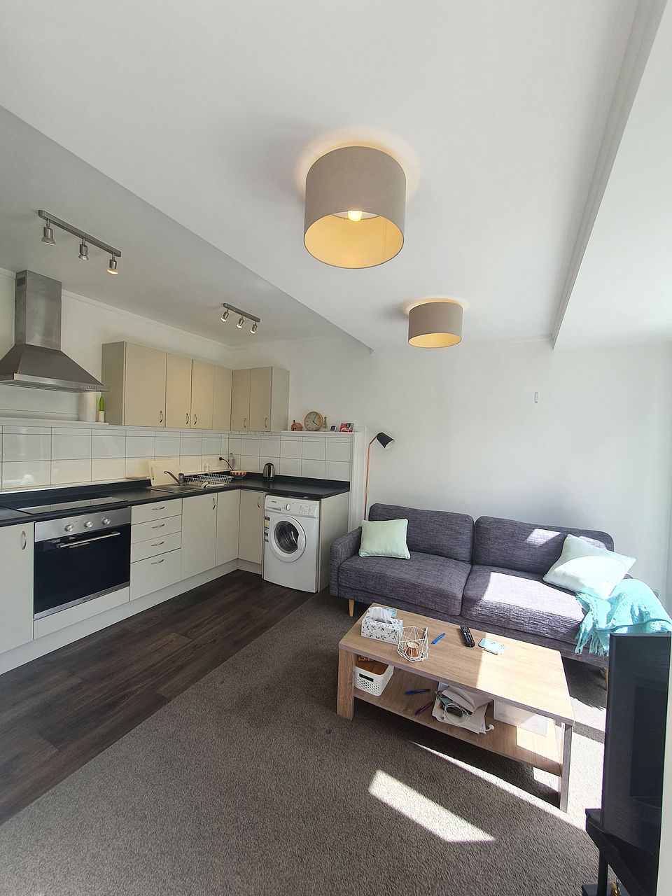 Appliances provided: Front loader washing machine/dryer, full sized fridge/freezer, oven and hob.