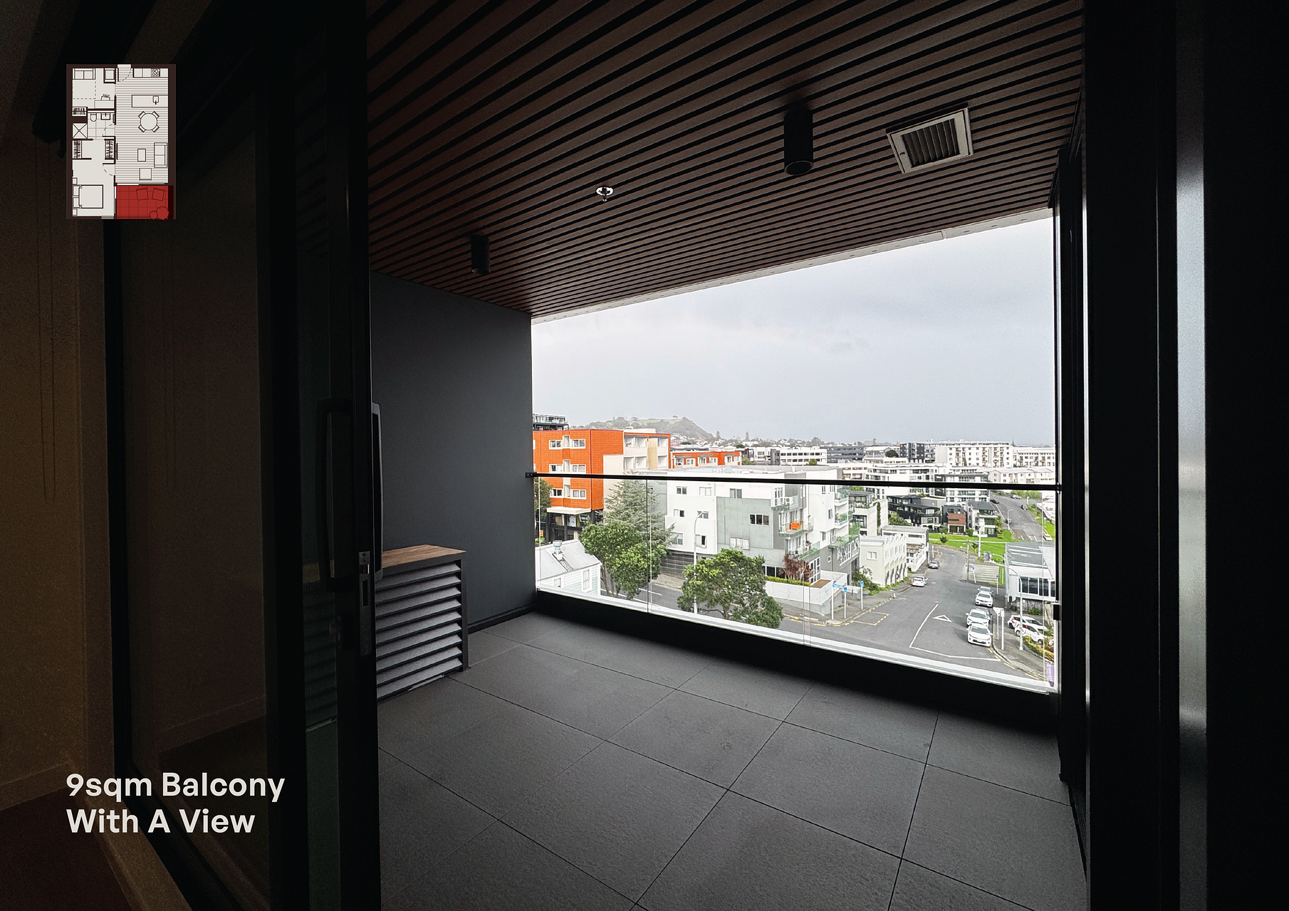 70sqm total (61sqm internal + 9sqm covered balcony)