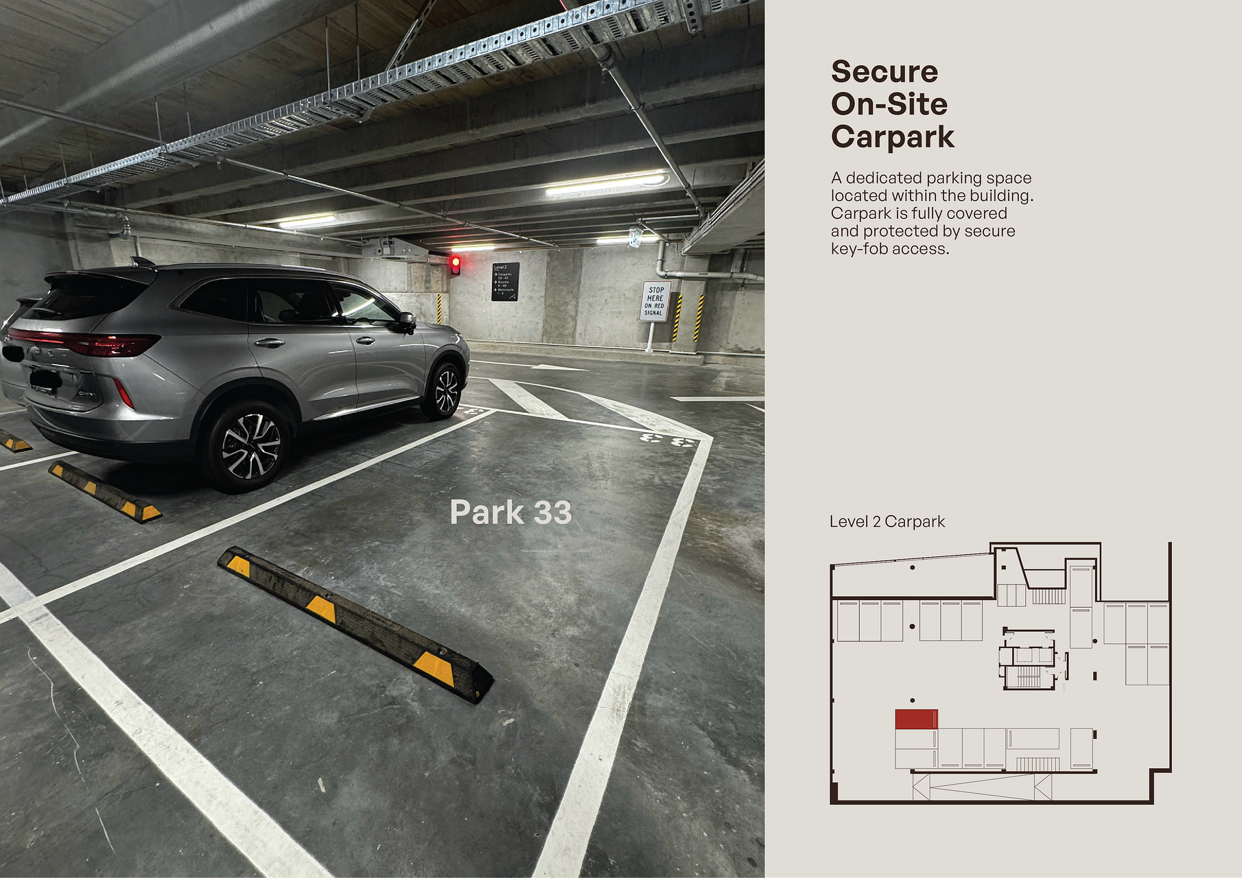 Secure, covered carpark within the building