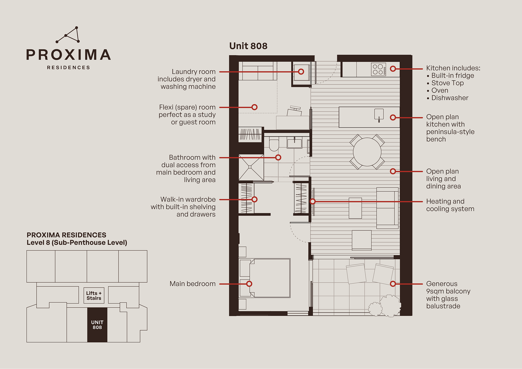 Experience elevated inner-city living in this beautifully finished, never-lived-in apartment at Proxima Residences — a boutique development completed in June 2024. Located on a sub-penthouse level (lucky number 808), this apartment offers a peaceful, elevated position in a secure and stylish building. Nestled in the evolving Eden Terrace neighbourhood, just a 20-minute walk to the CBD and close to vibrant Newmarket, this calm-yet-connected location delivers the best of both worlds.