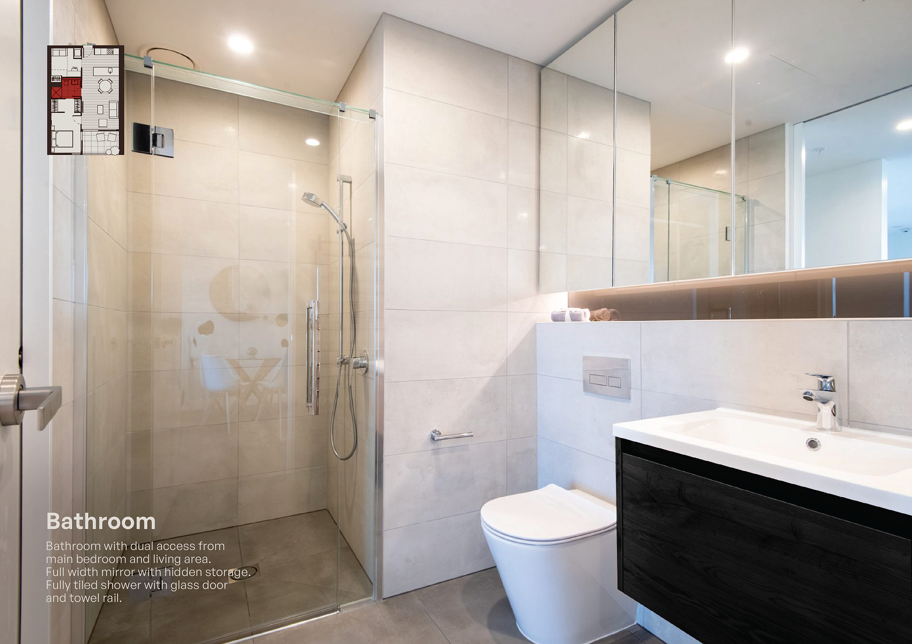 Modern bathroom, generous walk-in wardrobe
