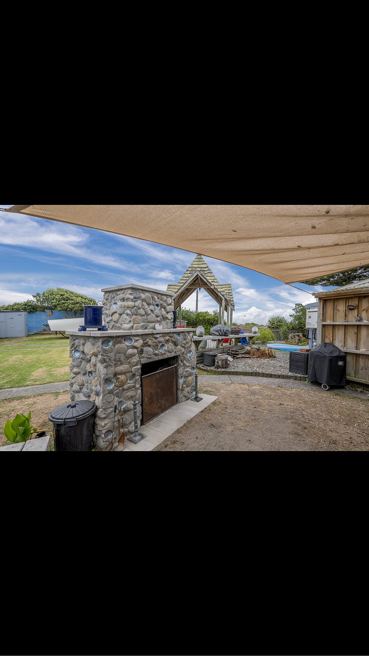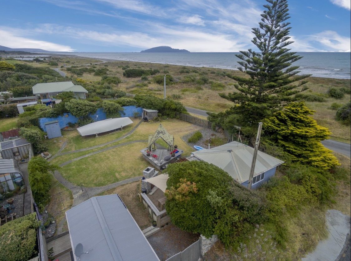 Unique, tranquil bach at the beach. Fully fenced section, outdoor fireplace, pagoda with sea views, fabulous community.