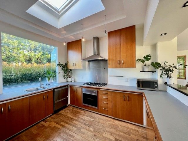 Filled with light, you will love this home in the summer months with the pool to cool off! Mature gardens surround the property with a water feature in the court yard.