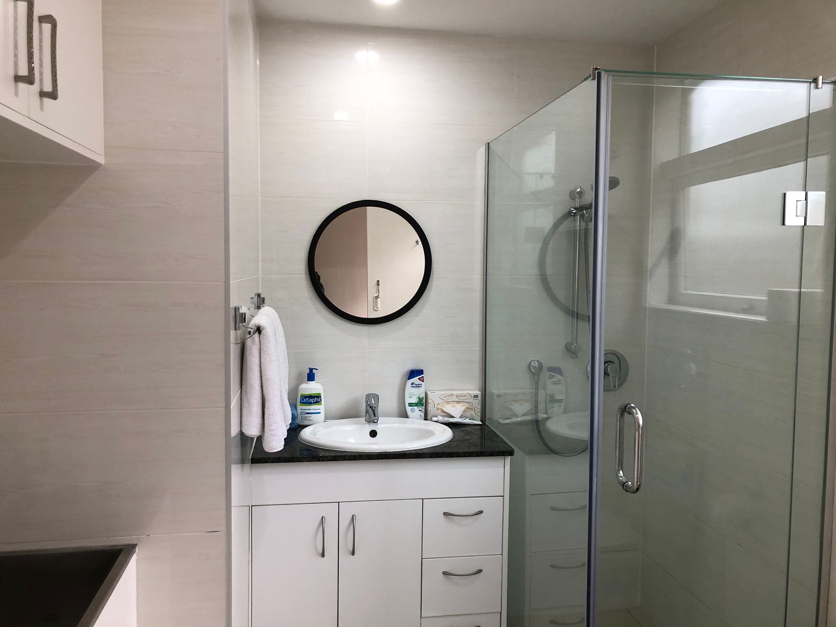 - fully tiled bathroom