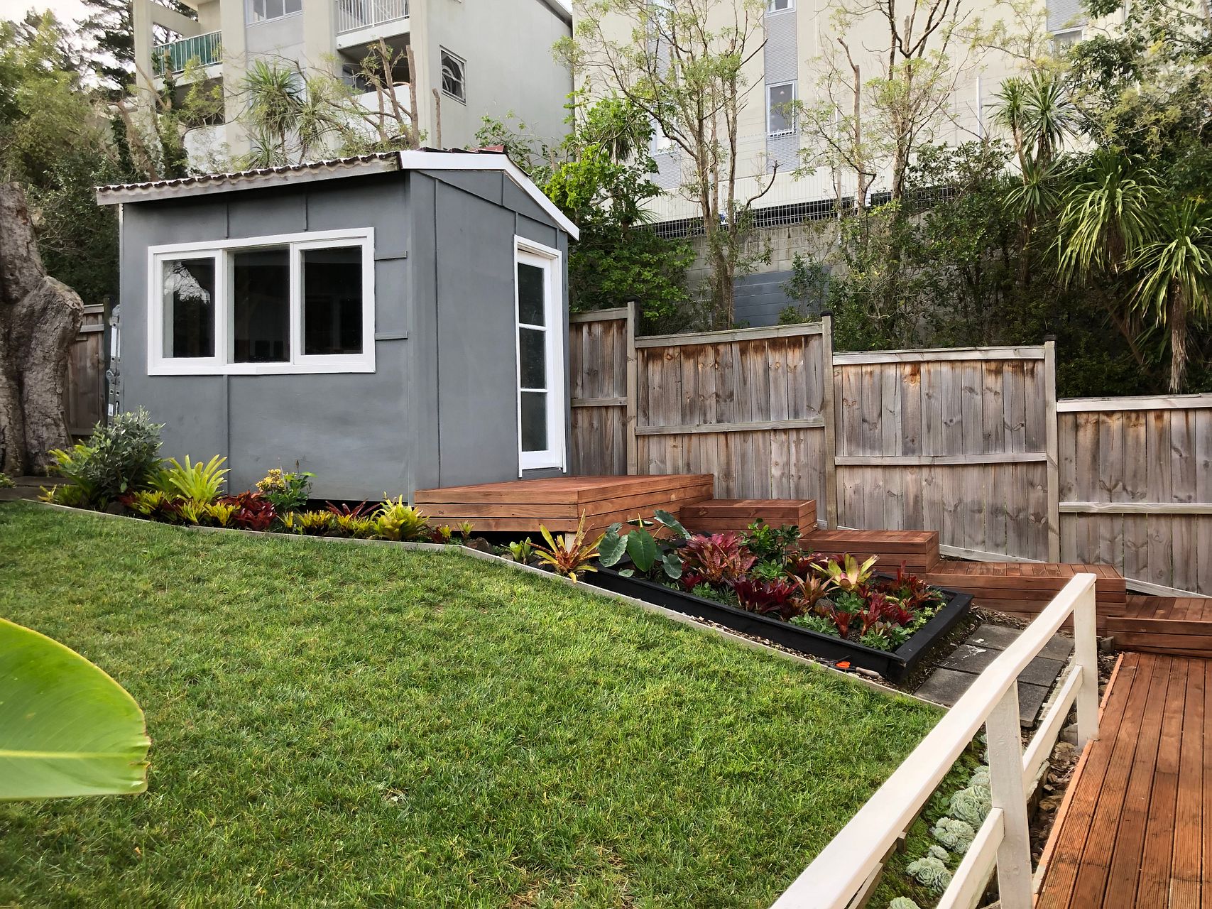 - Sunny decking area.