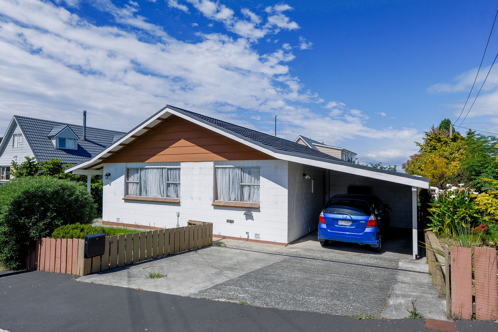This comfortable family home sits atop an easily maintained flat section with a single carport and driveway space for a second vehicle to fit in tandem.