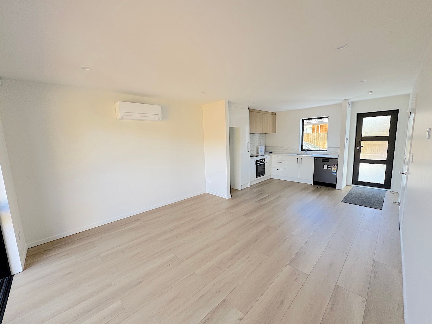 Kitchen with dishwasher and the open plan living are downstairs.