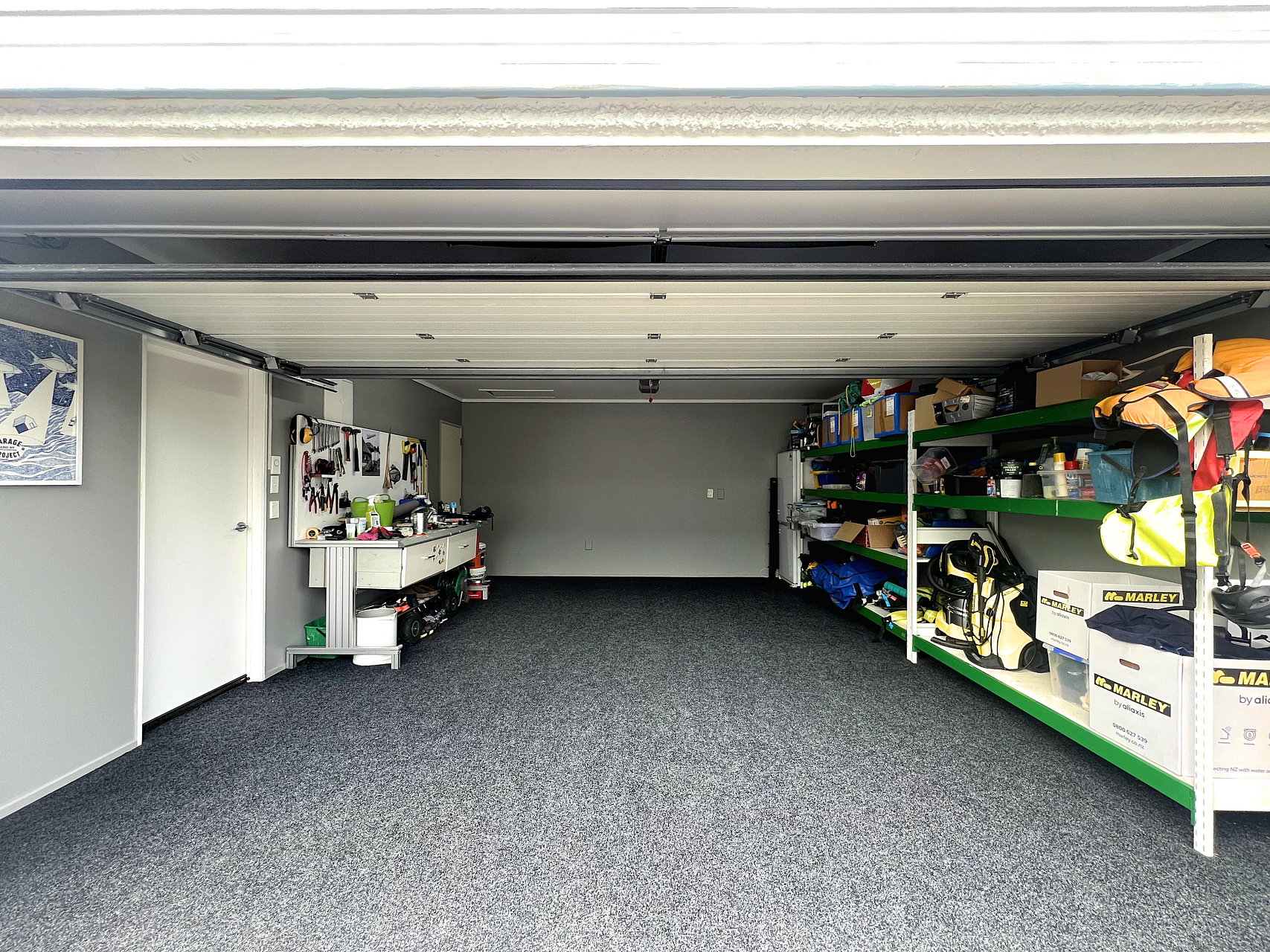 • 1.5 internal carpeted garage with shelving