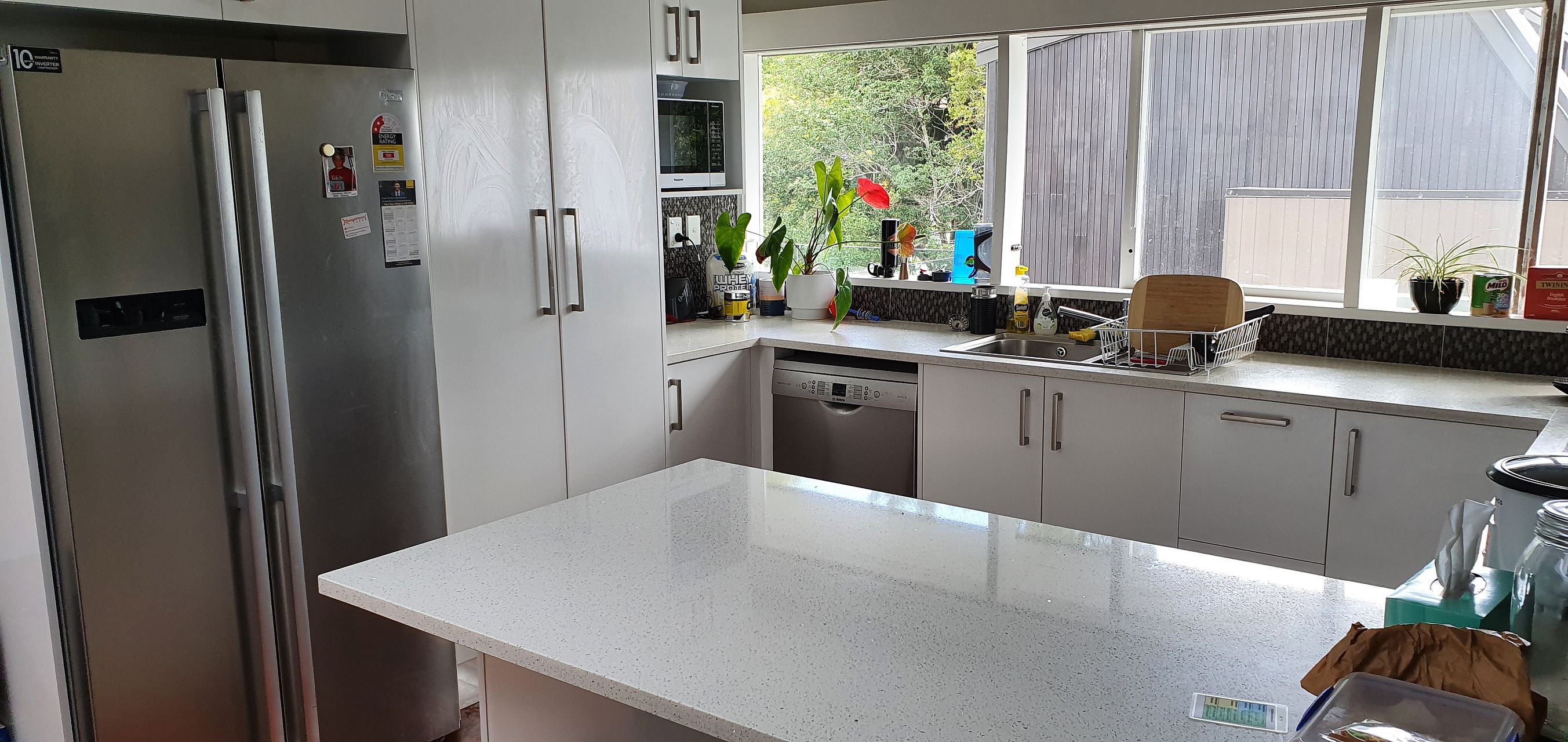 Enjoy the warmth of the Rinnai gas fire as you relax in the lounge on those winter nights. The kitchen and dining room is heated (or cooled) by a heat pump. Never have a cold shower with the high-pressure infinity hot water system. Fisher and Paykel washer and dryer included. The kitchen is well appointed with stainless steel double door fridge and Bosch cooktop, oven and dishwasher.