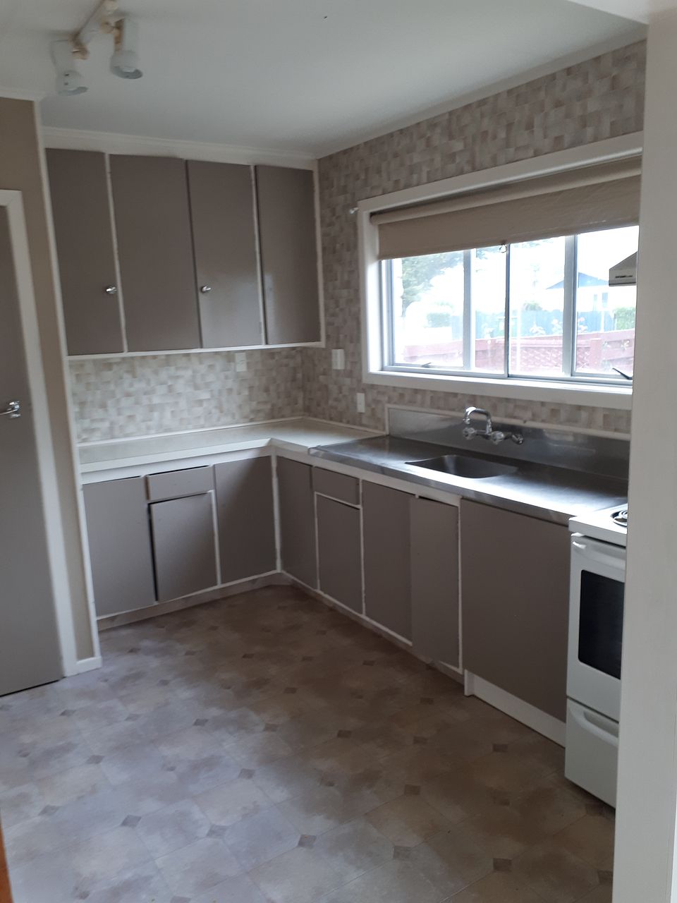 Brick property with single garage. Rear of section is fenced off.