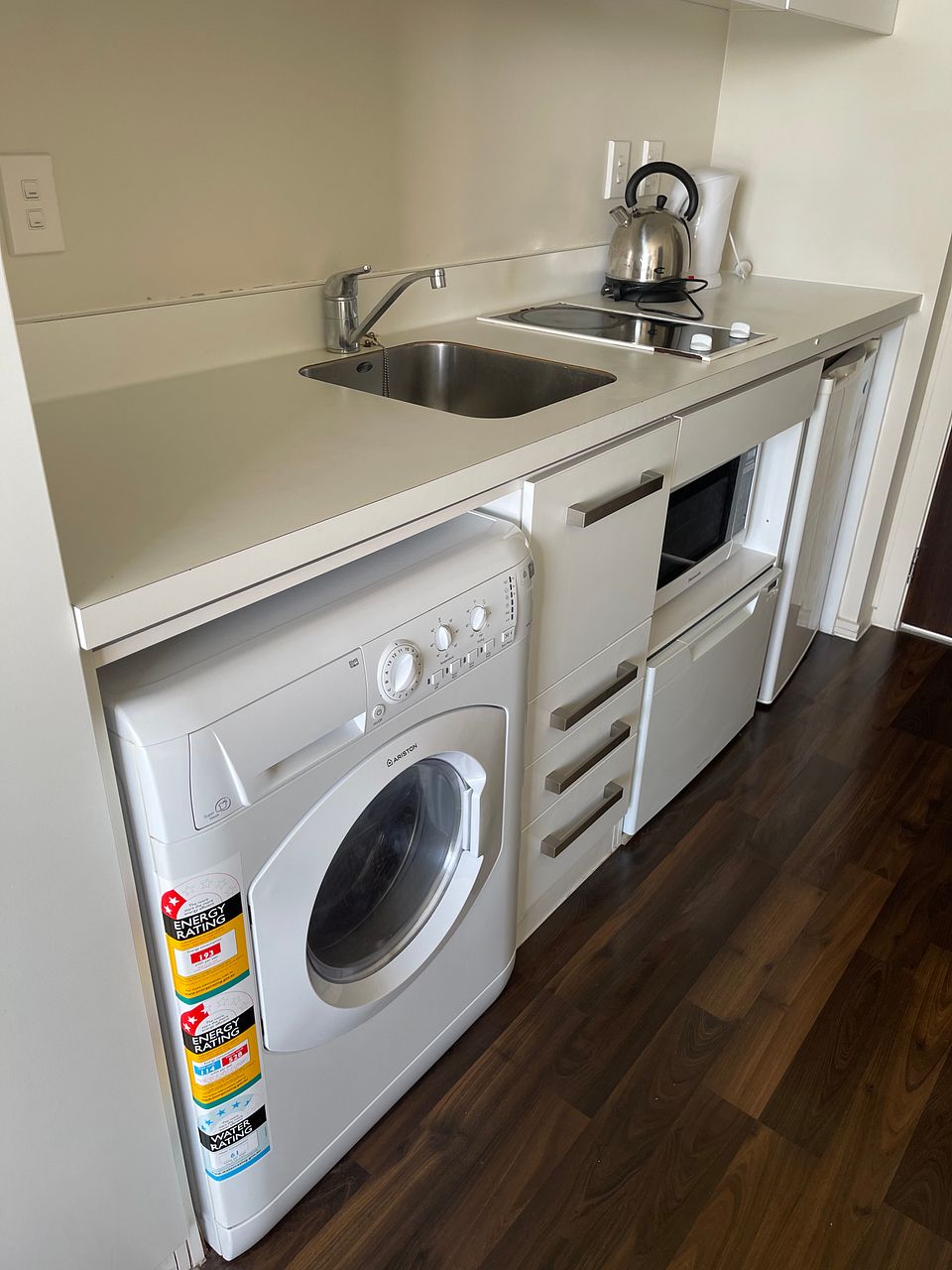 Fully furnished with bed, decks, TV, washing machine, dishwasher, toaster, kettle, pots & pans, Microwave, ceramic hob and rangehood, table & chairs.